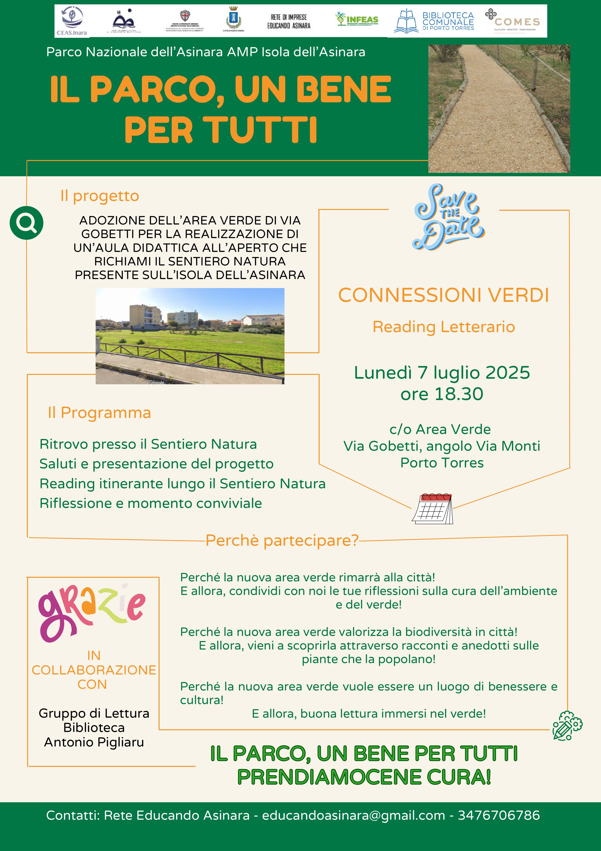 Il progetto, finanziato dalla Regione Sardegna nell'ambito delle azioni finalizzate alla cura e valorizzazione di beni comuni ad opera della rete dei Centri di Educazione Ambientale e alla Sostenibilità, ha come finalità l'adozione di un'area verde non fruita nel tessuto urbano cittadino, per la realizzazione di un Sentiero Natura/Aula Didattica all'aperto, che rappresenti e trasporti le tipicità e peculiarità floristiche e faunistiche del Parco Nazionale.