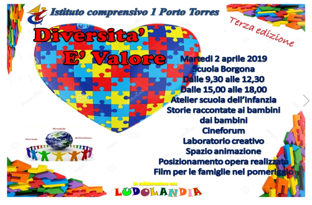 L'isitituto Comprensivo n. 1 organizza, in collaborazione con la ludoteca Ludolandia, la terza edizione di "Diversità è valore" in occasione della Giornata Mondiale dell'Autismo.