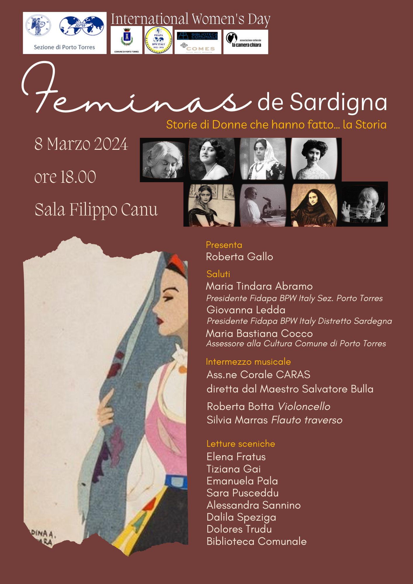 Parteciperanno Maria Tindara Abramo (presidente Fidapa BPW Italy - sezione di Porto Torres), Giovanna Ledda (presidente Fidapa BPW Italy - Distretto Sardegna) e Maria Bastiana Cocco (Assessora alla Cultura del Comune di Porto Torres).