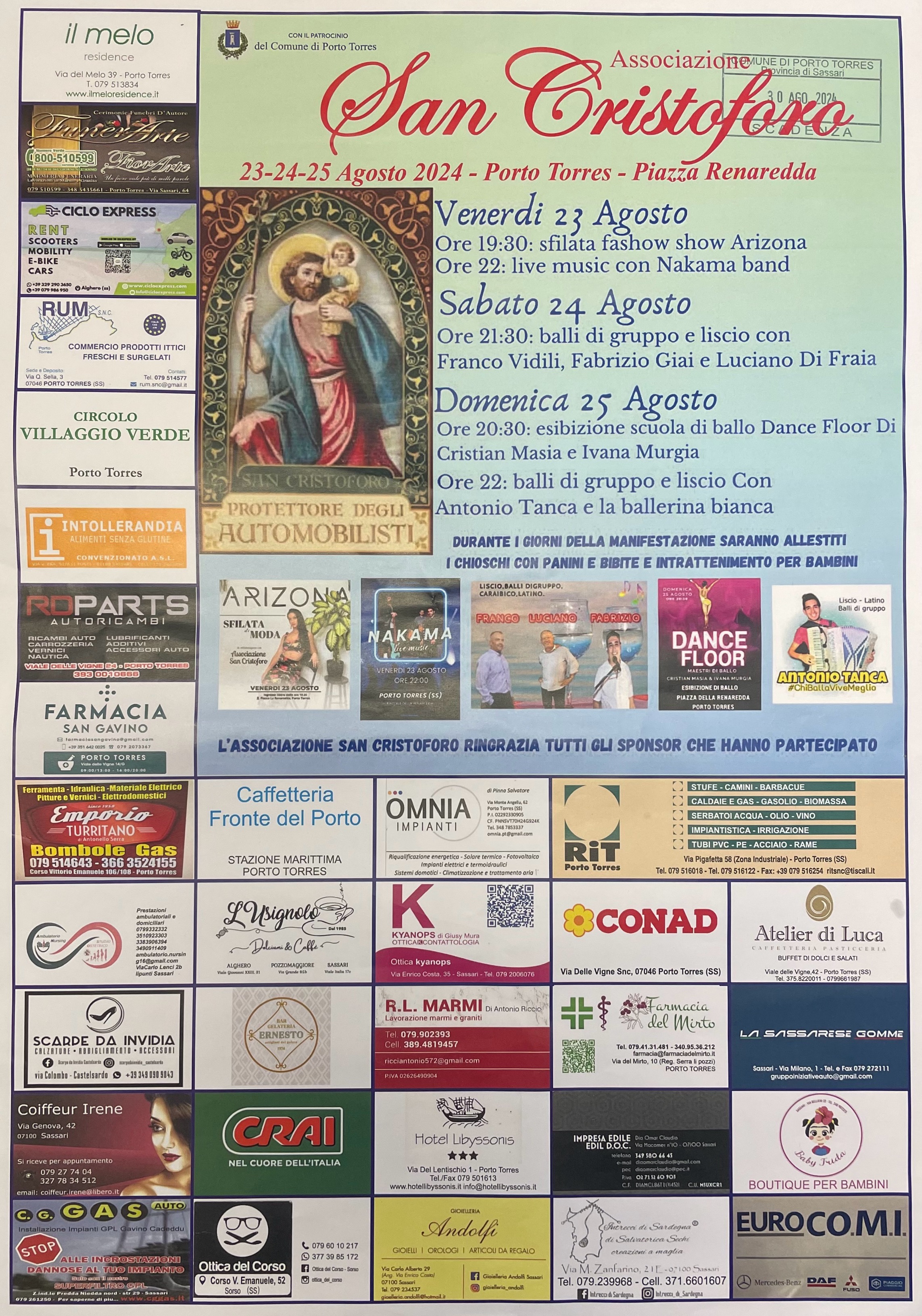 L'Associazione San Cristoforo, con il patrocinio del Comune di Porto Torres, organizza tre serate con musica, balli, degustazioni e intrattenimento.