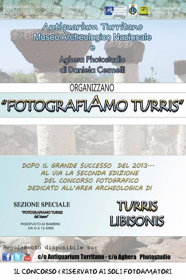 Dopo il grande successo del 2013, al via la II edizione del Concorso fotografico "FotografiAmo Turris", organizzato dalla fotografa Daniela Cermelli in collaborazione con l’Antiquarium Turritano, Museo Archeologico Nazionale, e la Soprintendenza per i Beni Archeologici per le province di Sassari e Nuoro, riservato ai soli fotoamatori.