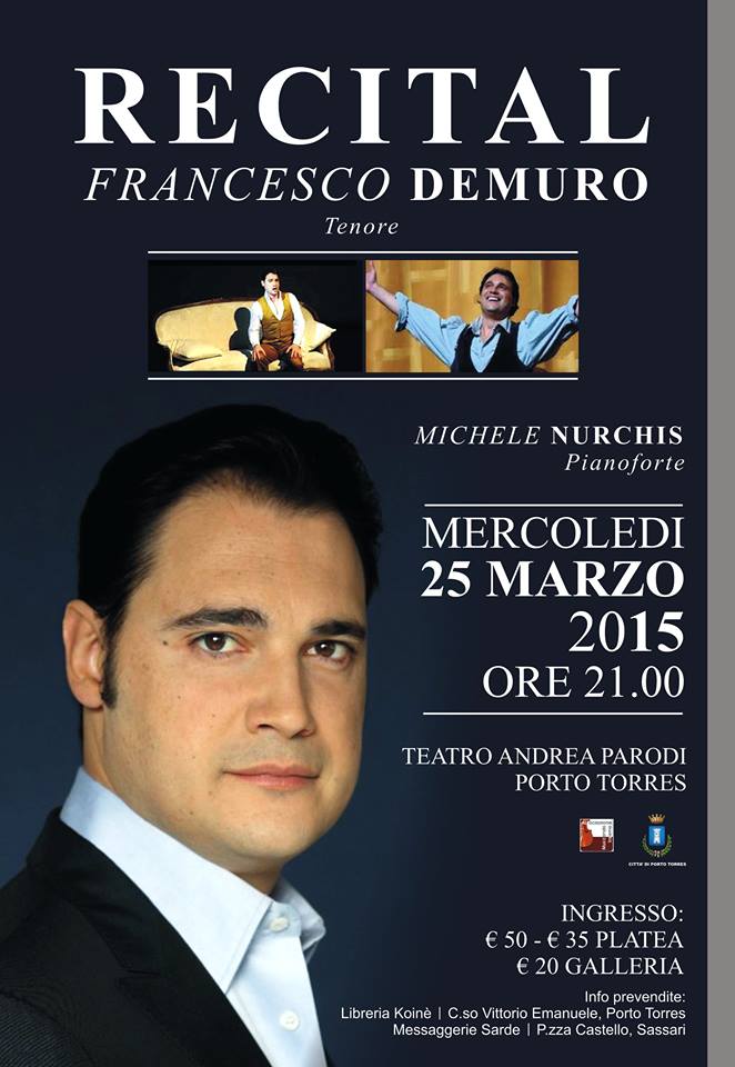 Recital del tenore turritano Francesco Demuro, accompagnato al pianoforte da Michele Nurchis.