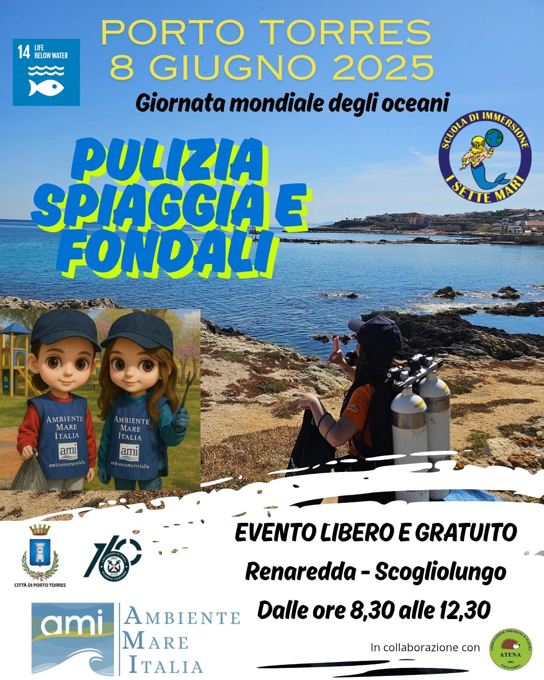 L’importanza degli Oceani per l’uomo, conoscere l’obiettivo 14 Agenda 2030. La dottoressa Bonino Cristina referente AMI Porto Torres, introduce per la giornata valori di Sostenibilità con gesti quotidiani concreti. Agire per dare un futuro alle giovani generazioni. Pulire spiagge e fondali insieme alla cittadinanza attiva in collaborazione con Associazioni del territorio come Atena e i suoi volontari. Muoversi a terra e in mare per un unico risultato. Le azioni di pulizia non sono mai uguali, mai monotone, ma sono indispensabili per occuparsi del proprio territorio e sentirsi parte di esso partecipando attivamente nel volontariato ambientale e grazie alle persone interessate e ai professionisti si crea Citizen Science. Vi aspettiamo domenica 8 giugno dalle 8,30 alle 12,30 tra Renaredda e Scogliolungo incontro in via lungomare 12c Porto Torres sede I Sette Mari per poi dividere le squadre operative di cittadini, subacquei e snorkelisti. Evento libero e gratuito Patrocinato dal comune di Porto Torres. La raccolta rifiuti sarà completata da differenziamento e catalogazione per le banche dati delle spiagge per garantire una conoscenza nel tempo, un rapporto di azioni costanti per il territorio. All’evento presenziare anche la Guardia costiera di Porto Torres con un mezzo Nautico di supporto per limitare l’ area di interesse.