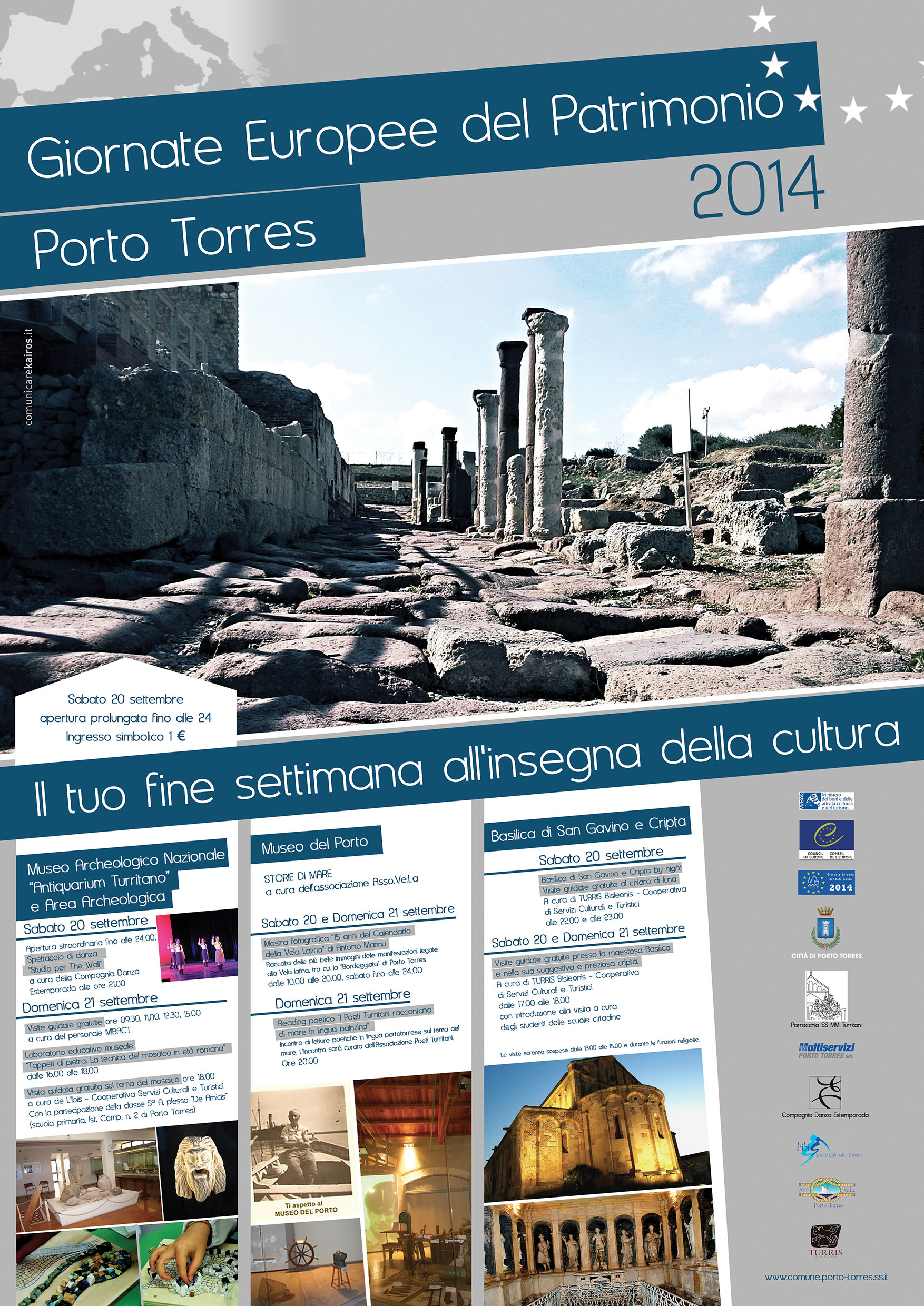 Durante la giornata di Sabato 20 settembre il Museo archeologico Nazionale "Antiquarium Turritano" e l'area archeologica aprirà al pubblico al costo simbolico di € 1,00. Durante la giornata di Domenica 21 sarà applicata la tariffa normale.