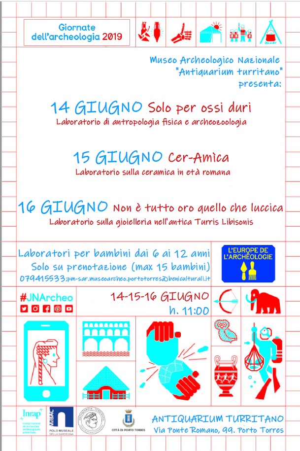 A Porto Torres, presso la Sala didattica del Museo Archeologico Nazionale “Antiquarium Turritano”, da venerdì 14 a domenica 16 giugno 2019 verranno organizzati tre laboratori didattici gratuiti per bambini di età compresa tra i 6 e i 12 anni. Si parte il 14 giugno, alle 11.00, con un laboratorio dal titolo Solo per ossi duri.