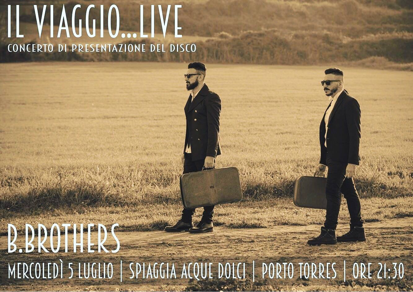 A circa un anno esatto dall'inizio del progetto, i B.Brothers, Domenico e Alberto Bazzoni, saranno i protagonsiti del concerto di presentazione del loro primo lavoro discografico, intitolato "Il Viaggio", nella splendida location della spiaggia delle Acque Dolci. Saranno accompagnati dalla band che ha partecipato alle registrazioni del disco, composta da: Fabrizio Leoni - Basso; Federico Canu - Batteria; Fabrizio Conconi - Chitarre/Cori; Uccio Soro - Chitarre/Cori; Jim Solinas - Piano/Hammond/Tastiere; Salvatore Moraccini - Fiati; Roberta Usai - Cori; Maria Rosaria Soro - Cori; Rita Casiddu - Cori