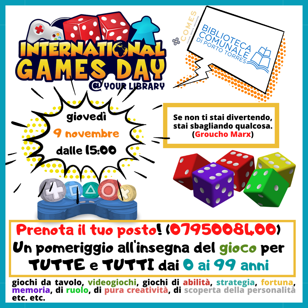 Appuntamento annuale con l’International Games day, la giornata promossa dall’ American Library Association con il duplice intento di mostrare le potenzialità educative del gioco e del videogioco e le capacità aggregative della biblioteca nei confronti di tutte le fasce di utenza.