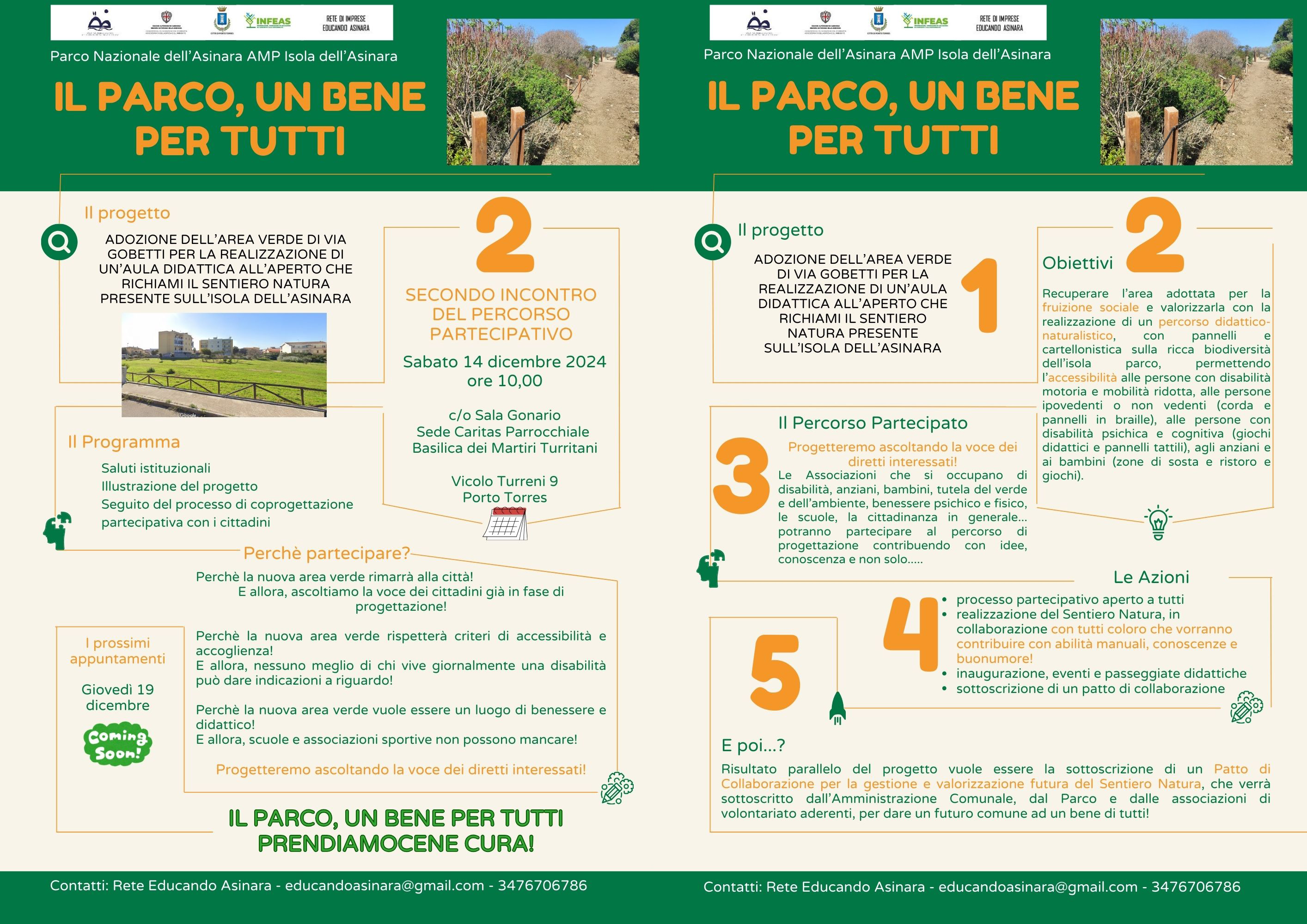 Dopo il piacevole fermento creativo del primo incontro, prosegue il percorso di progettazione partecipata nell'ambito del progetto Il Parco, un bene per tutti del Parco Nazionale dell'Asinara, in partenariato con il Comune di Porto Torres.