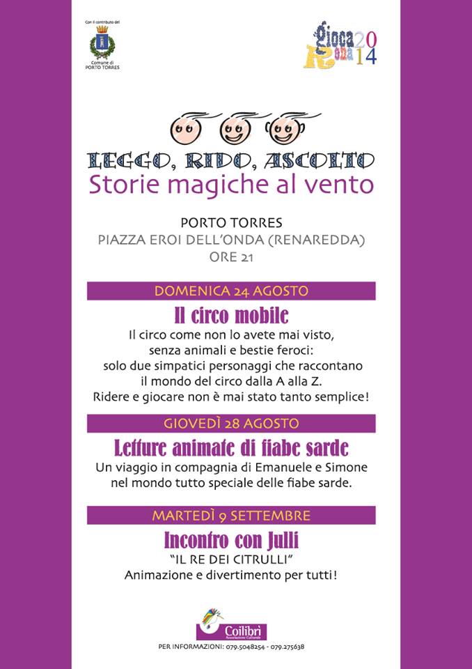 L'organizzazione è dall'Associazione Coilibrì all'interno del calendario di GiocaRena 2014 (dall'8 agosto al 13 settembre), organizzato dall'Assessorato alle Politiche Sociali del Comune di Porto Torres, con la collaborazione dei ragazzi del Servizio Civile. Sono undici le associazioni che partecipano al festival e ben venti gli appuntamenti pensati per l’intrattenimento delle famiglie.