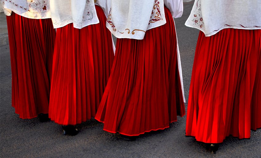 “La festa di San Gavino, nei tempi andati, più che qualunque altra nell’isola, riuniva in breve spazio quasi tutte le fogge del vestire del capo settentrionale. Nessuna penna ne pennello alcuno possono darci un’idea della visione fantastica dei molteplici e disparati costumi sardi riuniti nelle complicate spire di un infinito ballo tondo.” (Enrico Costa)