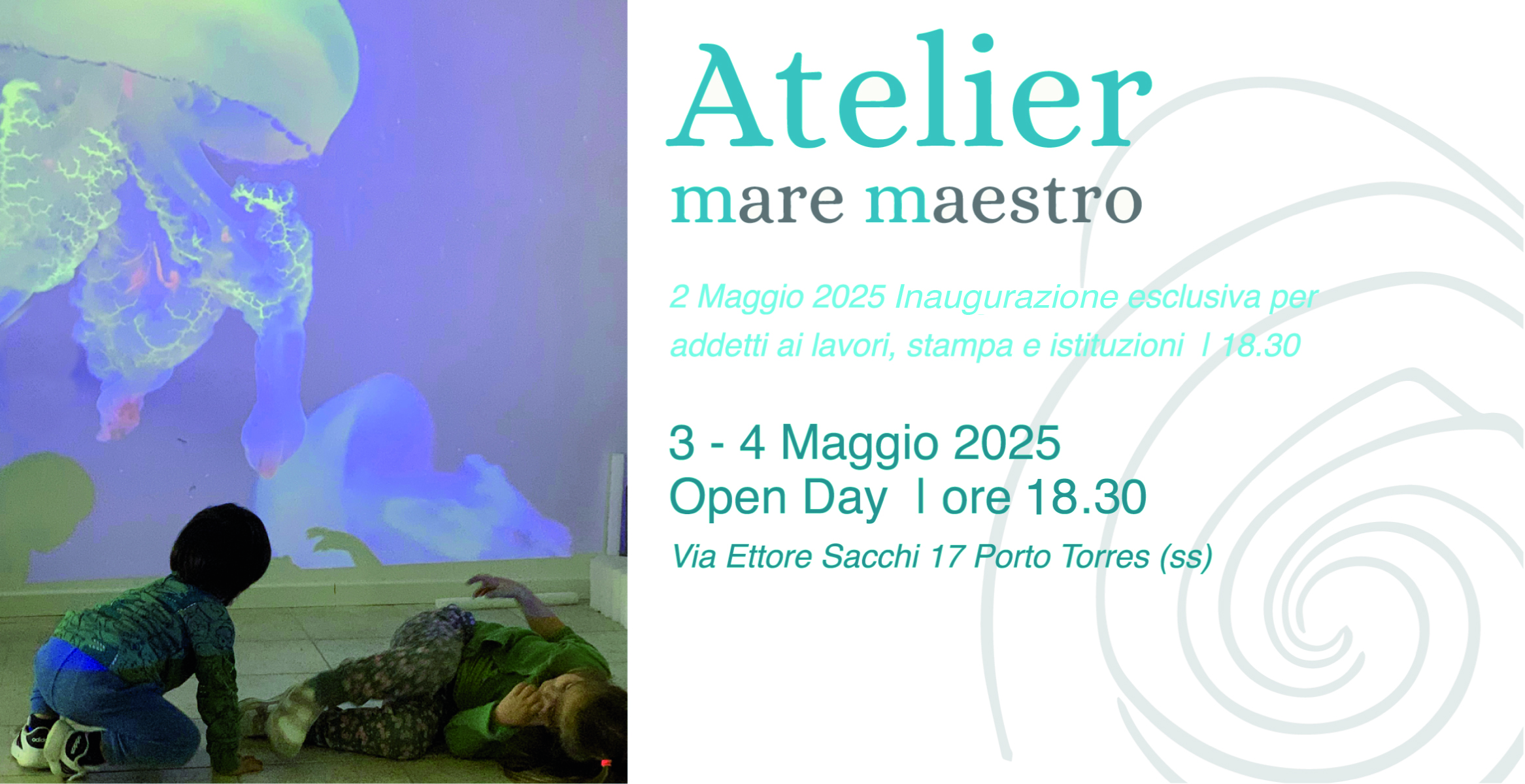 Il 2 Maggio 2025 nasce Atelier Mare Maestro, un nuovo spazio dedicato all'infanzia ispirato alla filosofia del Reggio Emilia Approach e ai cento linguaggi di Loris Malaguzzi, che aprirà le sue porte a Porto Torres in via Ettore Sacchi 17B. Sarà un'occasione speciale per scoprire la magia di questo luogo, pensato per nutrire la creatività, la curiosità e la meraviglia dei bambini attraverso i linguaggi espressivi, la natura e l'esplorazione.