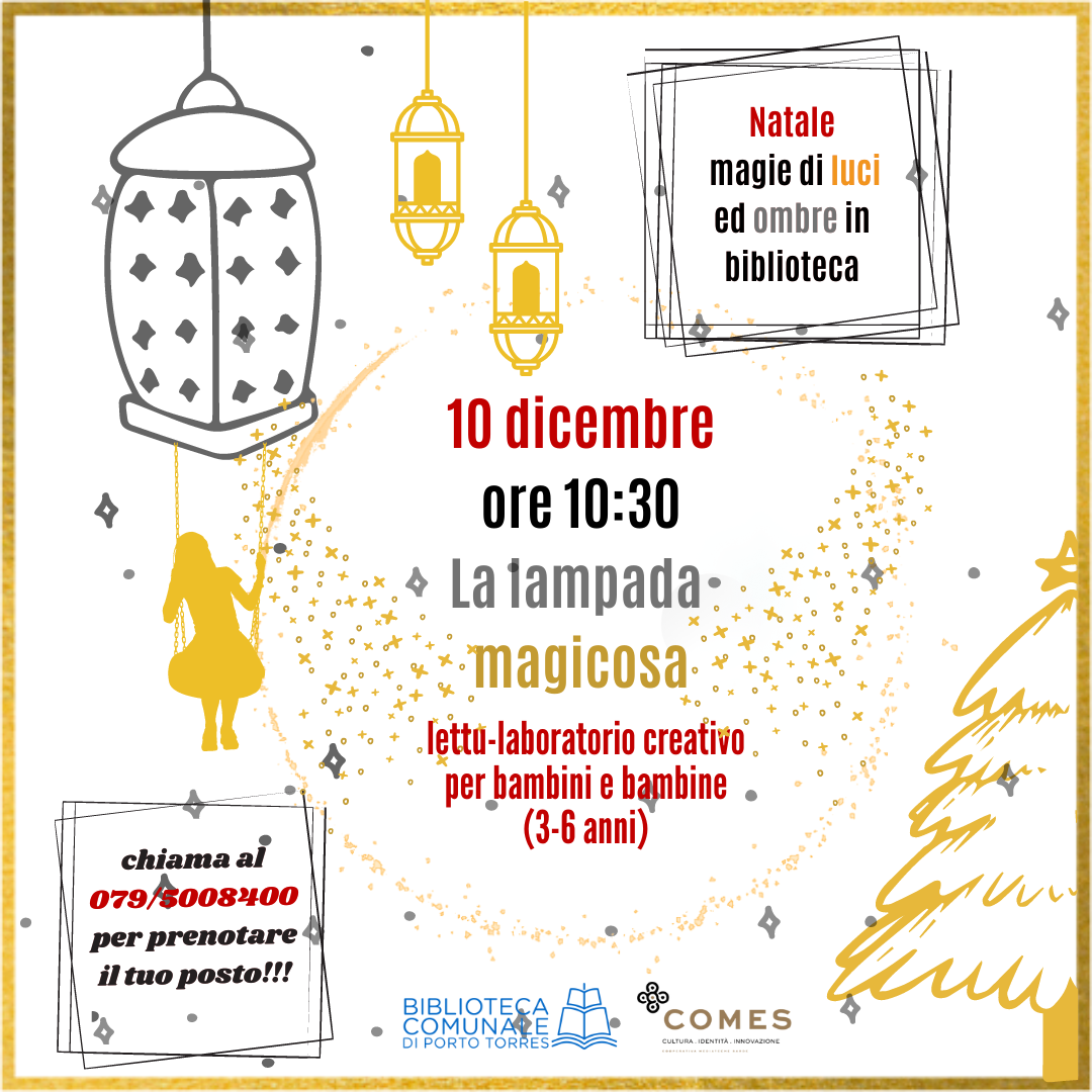 Alla fine della lettura i bambini e le bambine verranno coinvolti in un laboratorio creativo finalizzato al consolidamento dei contenuti attraverso la realizzazione di una lampada magica che potranno portare a casa per allestire la loro cameretta natalizia.