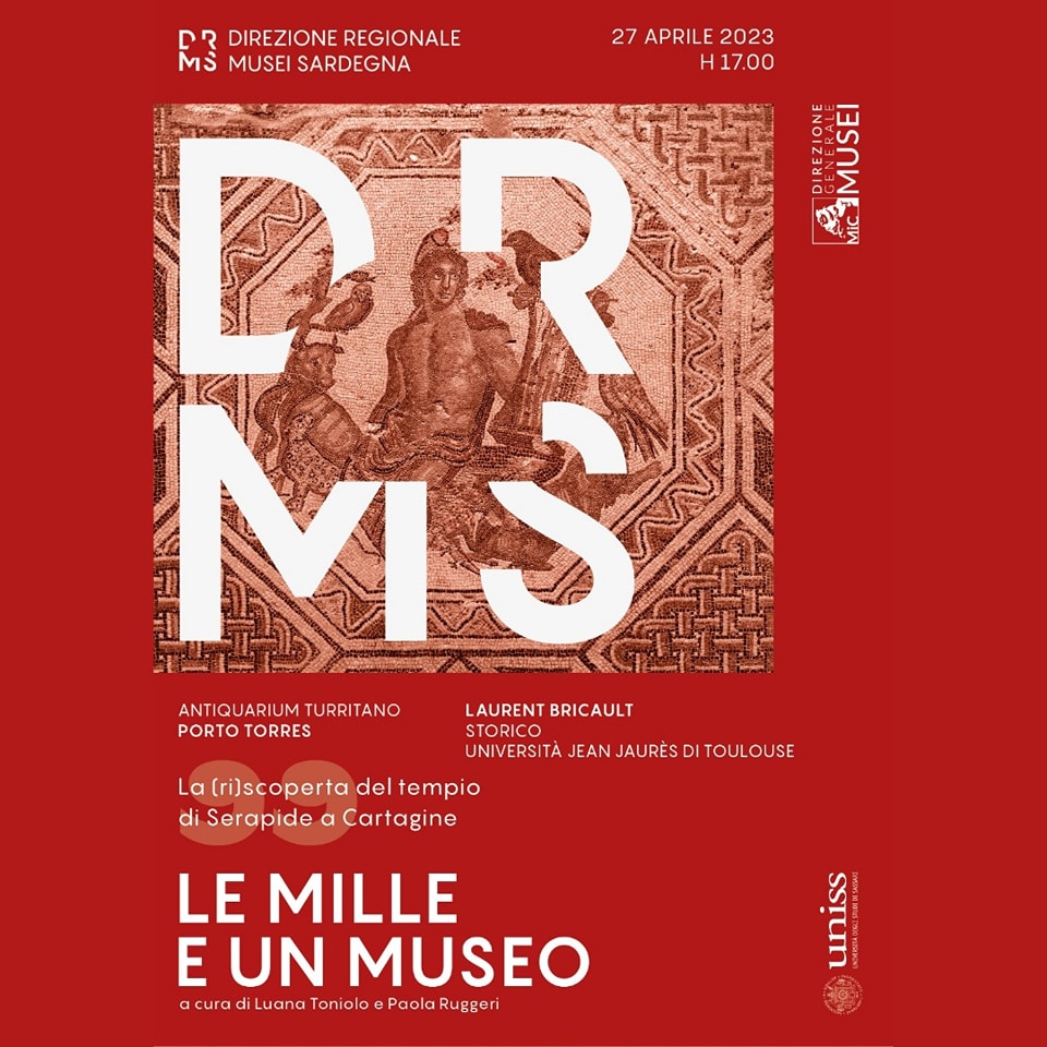 L’undicesimo incontro del ciclo di conferenze “Le mille e un museo”, organizzato dalla Direzione Regionale Musei della Sardegna in collaborazione con l’Università di Sassari, prevede un intervento del prof. Laurent Bricault, egittolo, storico, numismatico ed epigrafista francese, docente all’Università Jean Jaures di Tolosa. Il professor Bricault, esperto di storia delle religioni e in particolare di culti orientali, come quelli ben attestati a Turris Libisonis, presenterà un intervento sul tempio di Serapide a Cartagine, insieme al dott. Alberto Gavini dell’Università di Sassari.