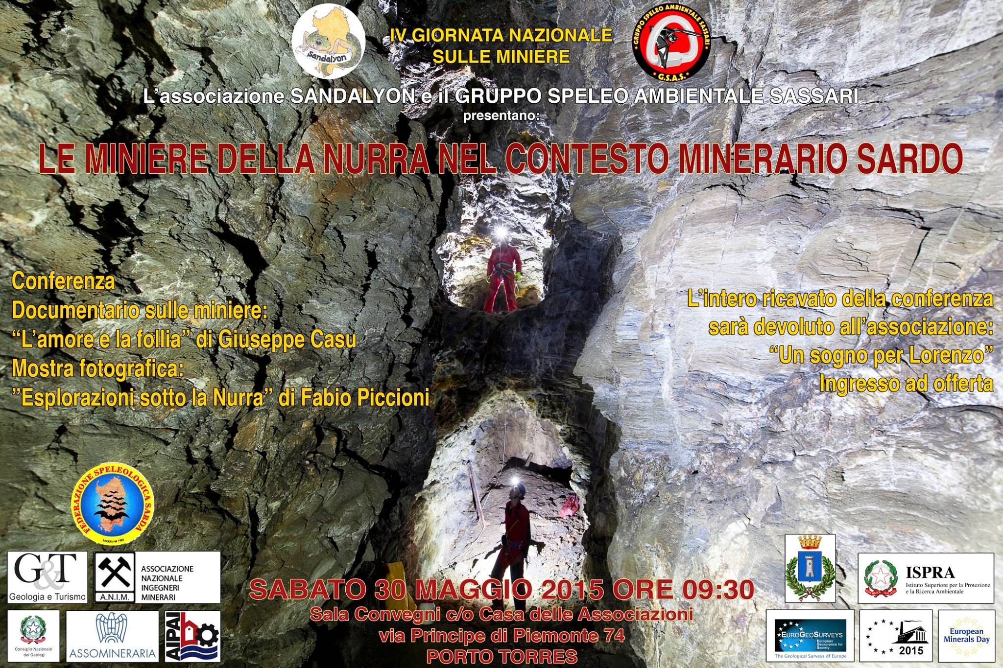 In occasione della settima Giornata Nazionale delle Miniere, promossa dall’Istituto Superiore per la Protezione e la Ricerca Ambientale, il Gruppo Speleo Ambientale Sassari e l'associazione Sandalyon invitano tutti alla conferenza "Le miniere della Nurra nel contesto sardo", dove verranno presentate le esplorazioni speleologiche all'interno di ciò che rimane delle tante centinaia di metri di vuoti realizzati dai nostri antenati, una giornata nata per valorizzare e mettere in mostra le grandi opere minerarie italiane di cui la Sardegna è grande ambasciatrice.