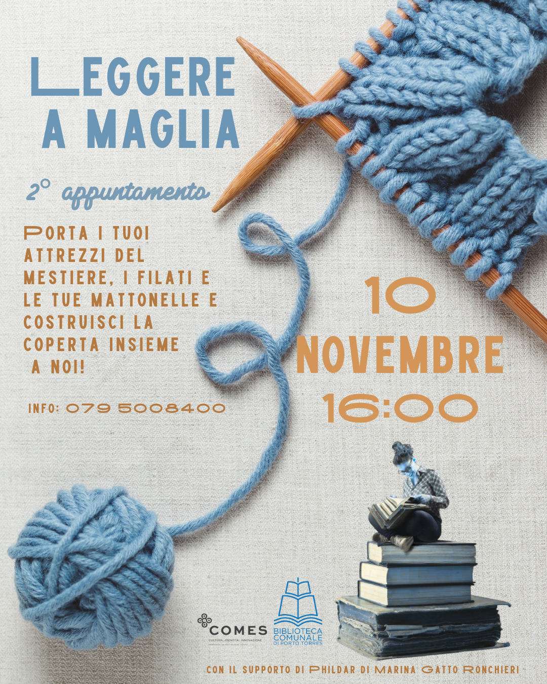 Secondo appuntamento di "Leggere a maglia" il 10 novembre a partire dalle ore 16:00 per tutti e tutte le appassionate di maglia e uncinetto.