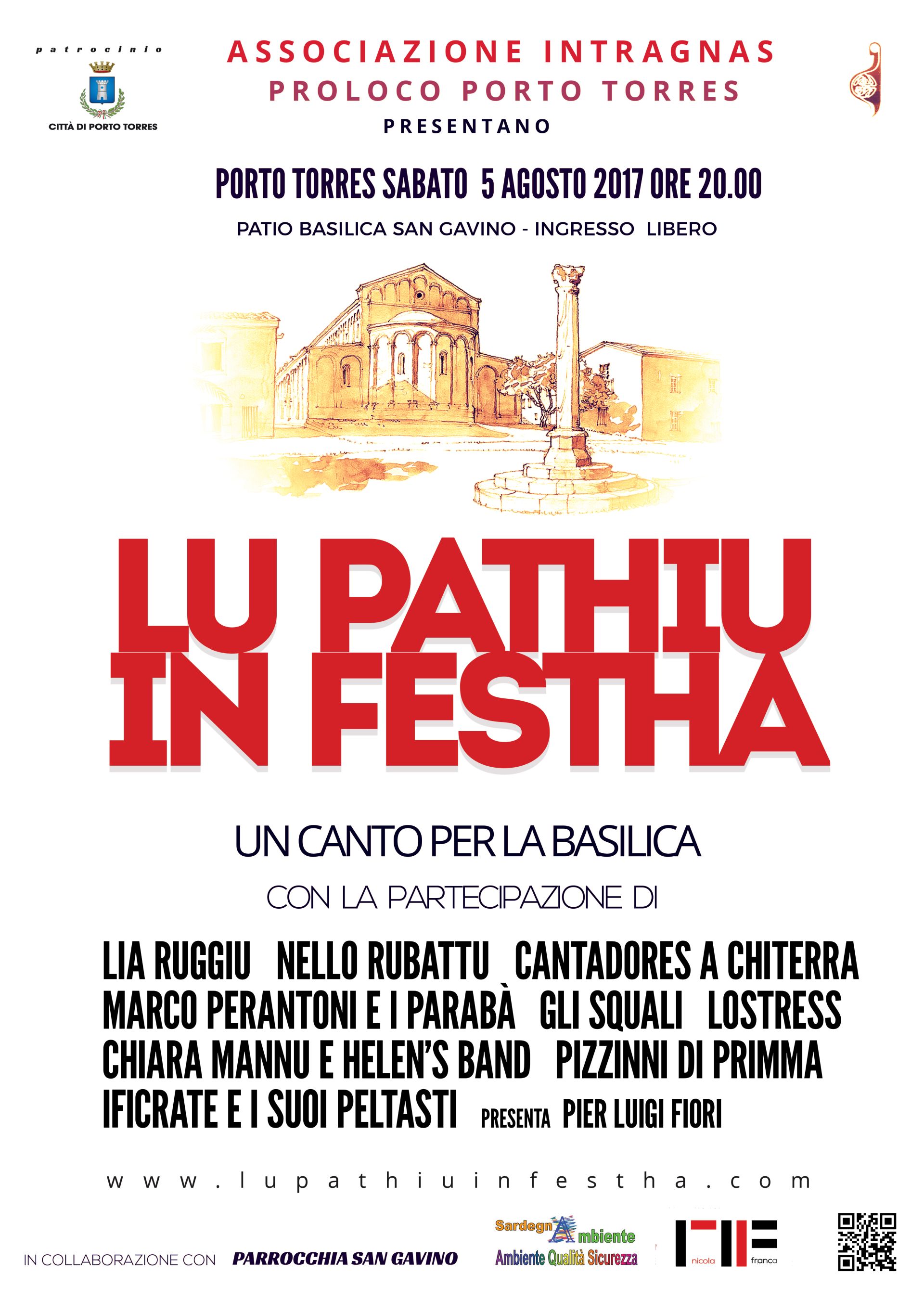 L'associazione culturale Intragnas e la Pro Loco Porto Torres, in collaborazione con la Parrocchia di San Gavino, SardegnAmbiente e Nicola Franca e col patrocinio del Comune di Porto Torres, organizzano Lu Pathiu in Festha.