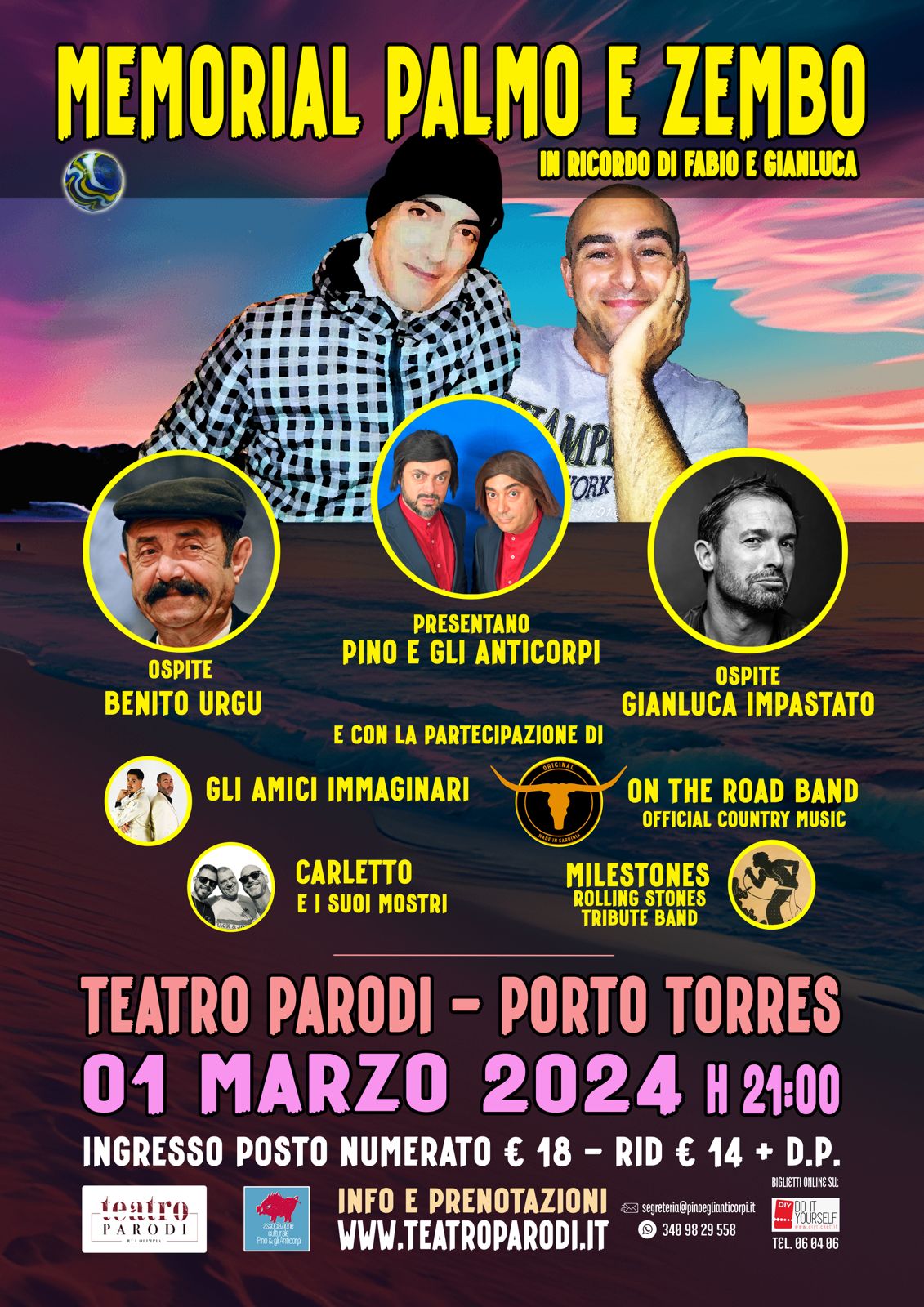 Spettacolo presentato da Pino e gli Anticorpi, con ospiti Gianluca Impastato e Benito Urgu e la partecipazione degli Amici Immaginari, Carletto e i suoi mostri, i Milestones e la On the Road Band.