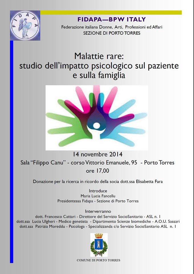 Grazie alla raccolta dei fondi ottenuti con la "Barcolana turritana e lo sport per la ricerca" la FIDAPA, sezione di Porto Torres, consegnerà la donazione per la ricerca "Malattie rare: studio dell'impatto psicologico sul paziente e sulla famiglia", in ricordo della socia Dott.ssa Elisabetta Fara.
