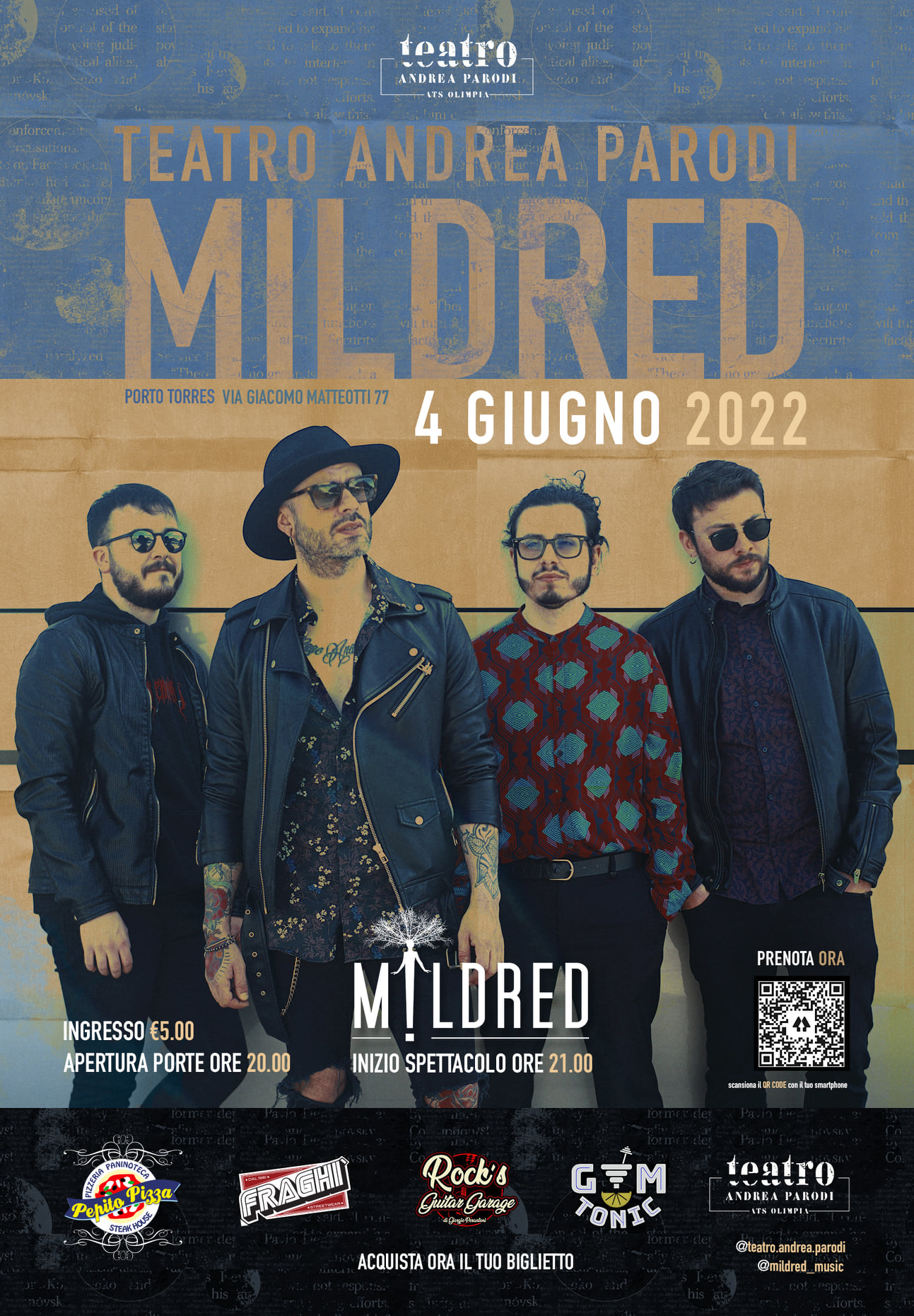 Dal palcoscenico del Teatro Ariston di Sanremo ad aperture di esibizioni musicali di artisti nazionali ed internazionali, come Eugenio Finardi e Lacuna Coil, il 4 giugno i Mildred tornano a Porto Torres per un concerto evento al Teatro Parodi.