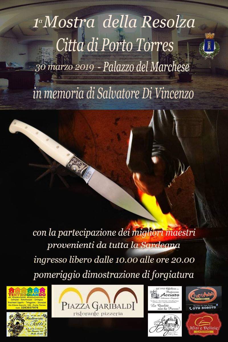 L'arte e la tecnica della realizzazione dei coltelli saranno al centro della prima "Mostra della Resolza", curata da Francesco Di Vincenzo, patrocinata dal Comune di Porto Torres e dedicata alla memoria di Salvatore Di Vincenzo. Saranno più di quaranta gli artigiani, tra i migliori e riconosciuti maestri provenienti da tutta la Sardegna, che sabato 30 marzo 2019 esporranno per tutto il giorno al Palazzo del Marchese le loro collezioni. Nel pomeriggio, attorno alle 16:00, nella vicina Piazza Bazzoni, si svolgerà una dimostrazione sulla forgiatura dell'acciaio, con la tecnica della battitura e dell'assemblaggio.