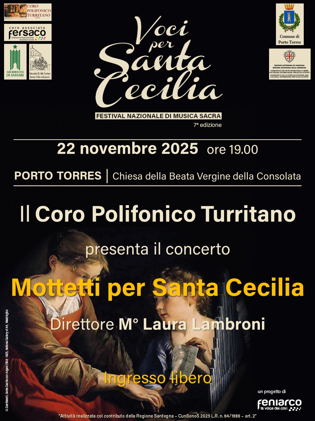 L'evento, patrocinato dal Comune di Porto Torres, è inserito nel cartellone nazionale "Voci per Santa Cecilia – 7° Festival Nazionale di Musica Sacra", progetto di rete per i cori associati alla FENIARCO (Federazione Nazionale Italiana Associazioni Regionali Corali).