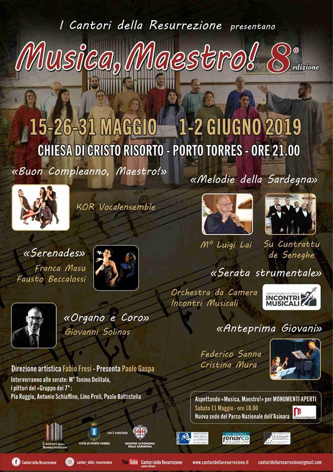 Le voci della polifonia, della tradizione sarda e mediterranea. E poi gli strumenti, le melodie dell’Isola, l’arte e la solidarietà. Sarà un’edizione particolarmente ricca di appuntamenti quella di “Musica, Maestro!”, la rassegna organizzata dai Cantori della Resurrezione e dedicata a don Antonio Sanna, fondatore della ensemble e parroco, mai dimenticato, della Parrocchia di Cristo Risorto.