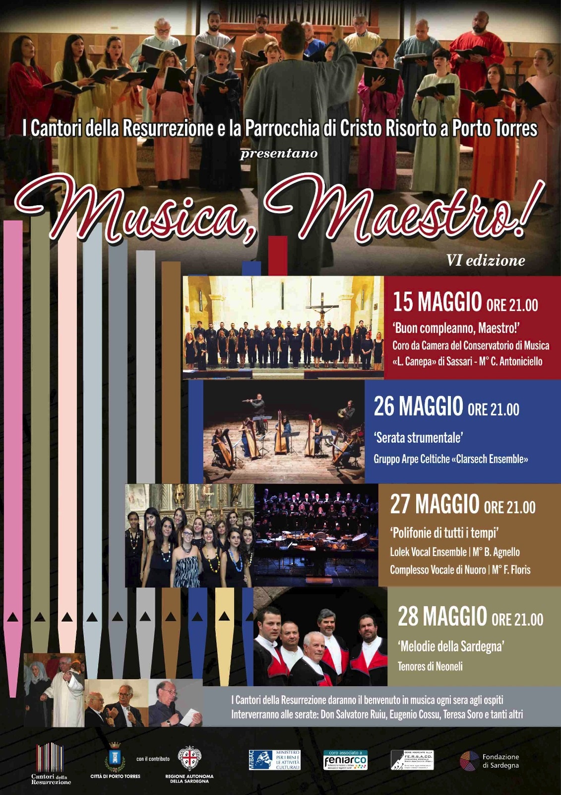 Il 15 maggio si esibirà il Coro del conservatorio “L. Canepa” di Sassari, diretto dal Maestro Antoniciello. Il 26 la serata strumentale vedrà come protagonista il Gruppo Arpe Celtiche Clarsech Ensemble. Il 27 spazio alla musica polifonica con Lolek Vocal Ensemble diretto dal Maestro Agnello e il Complesso vocale di Nuoro diretto dal Maestro Floris. Chiusura il 28 maggio con le melodie della Sardegna dei Tenores di Neoneli. Tutte le serate saranno introdotte dalle esibizioni dei Cantori della Resurrezione e dagli interventi di tanti amici e di persone che hanno dialogato nel tempo con Don Sanna, tra i quali Eugenio Cossu, Don Salvatore Ruiu e Teresa Soro.