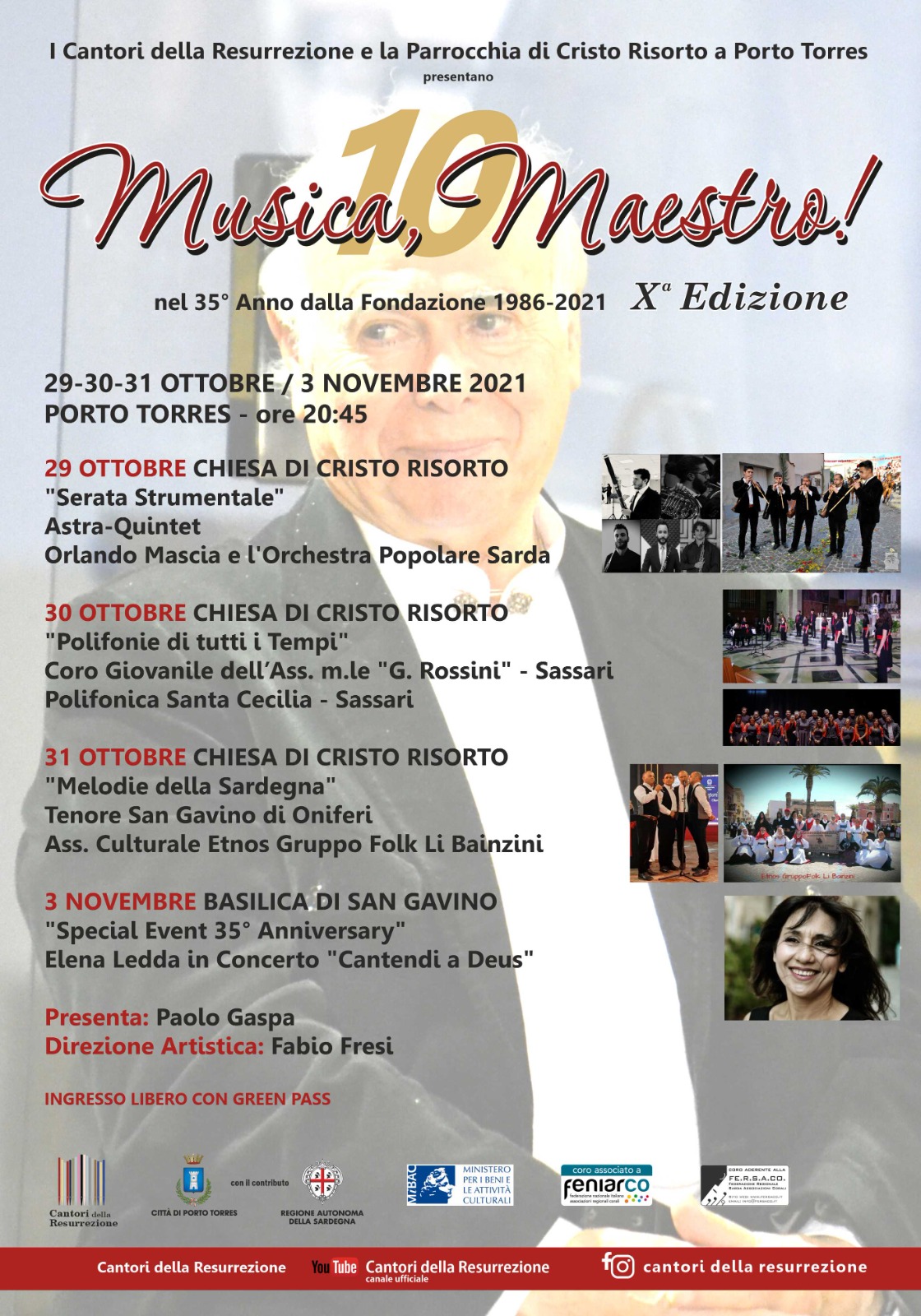 Musica, Maestro!, annualmente evento collaterale dei festeggiamenti per i SS. Martiri Turritani, porta in città la migliore musica della Sardegna, tra cori polifonici, gruppi di tradizione di canto a tenore e cuncordu, musicisti, ensemble ed orchestre.
