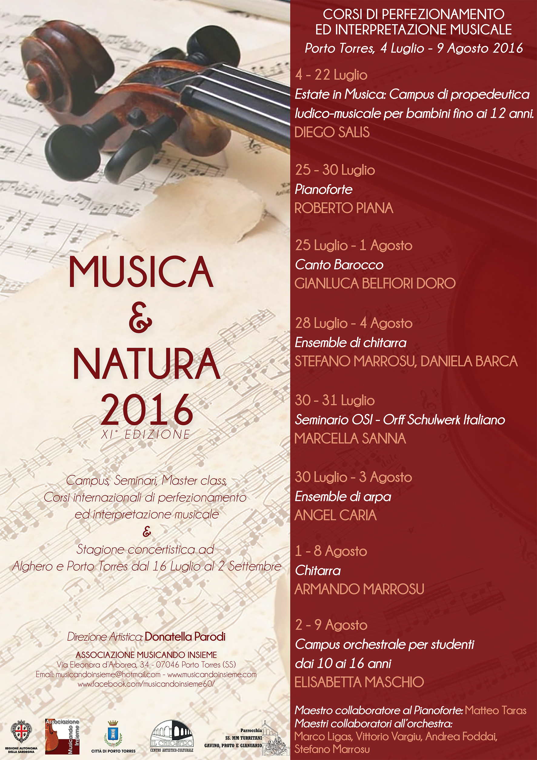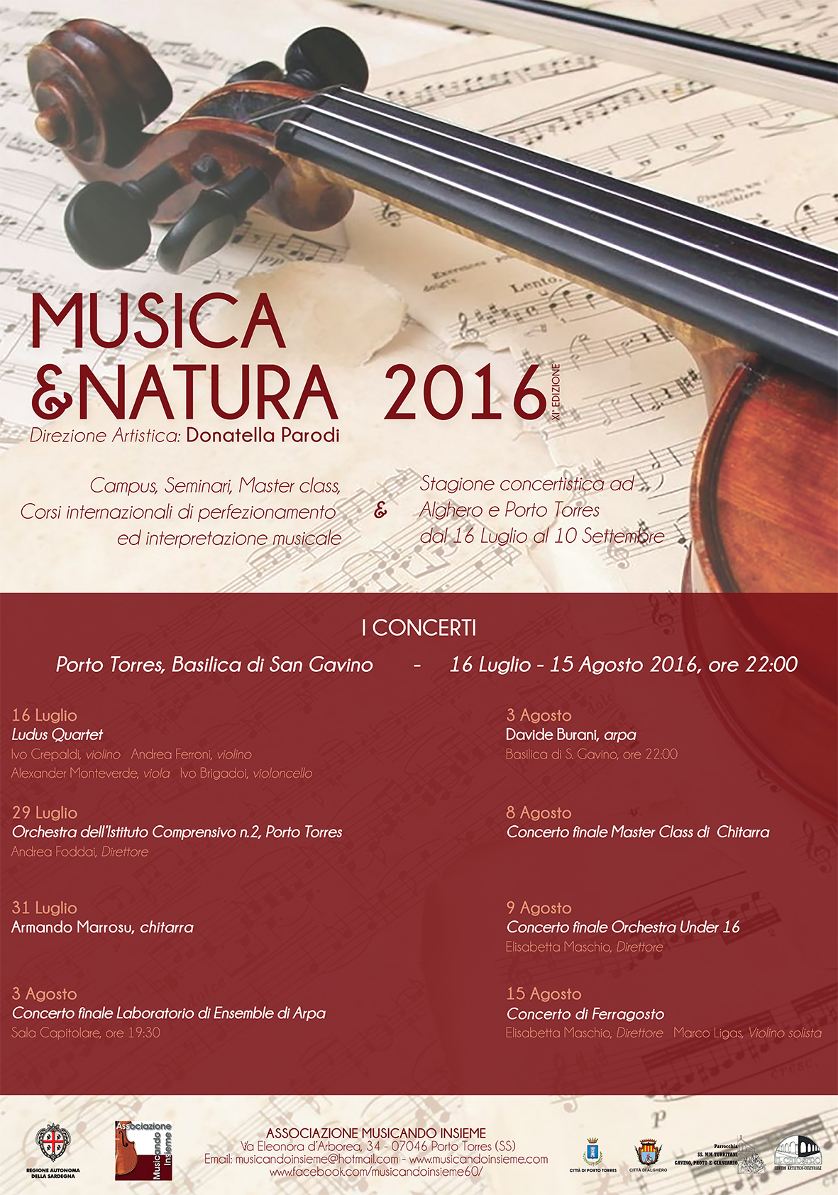 La rassegna, che si svolge anche quest'anno a Porto Torres e ad Alghero, è organizzata dall’Associazione Musicando Insieme, con la direzione artistica di Donatella Parodi, col contributo dell'Assessorato alla Cultura della Regione Sardegna. Gli eventi si svolgono in collaborazione con la Parrocchia dei SS.MM. Turritani Gavino, Proto e Gianuario di Porto Torres e col Centro Artistico Culturale "Il Chiostro" di Alghero.