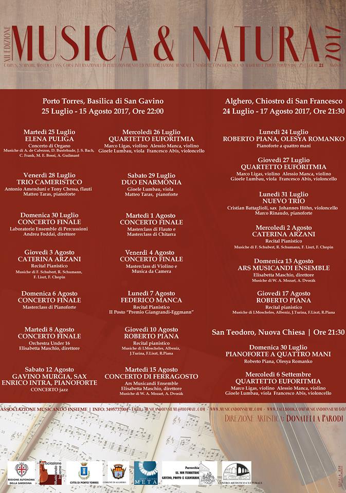 La rassegna è organizzata dall’Associazione Musicando Insieme, con la direzione artistica di Donatella Parodi, col contributo dell'Assessorato alla Cultura della Regione Sardegna e col patrocinio del Comune di Porto Torres, Comune di Alghero e Fondazione Meta.