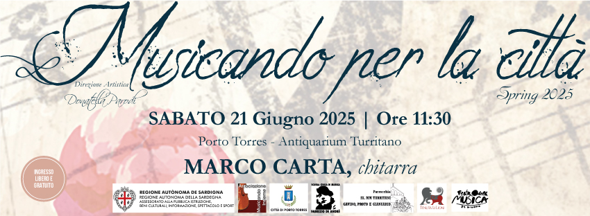 In occasione della Festa della Musica 2025, sabato 21 giugno, alle ore 11:30, l'Antiquarium Turritano di Porto Torres ospiterà un concerto intimo e raffinato del chitarrista classico Marco Carta.
