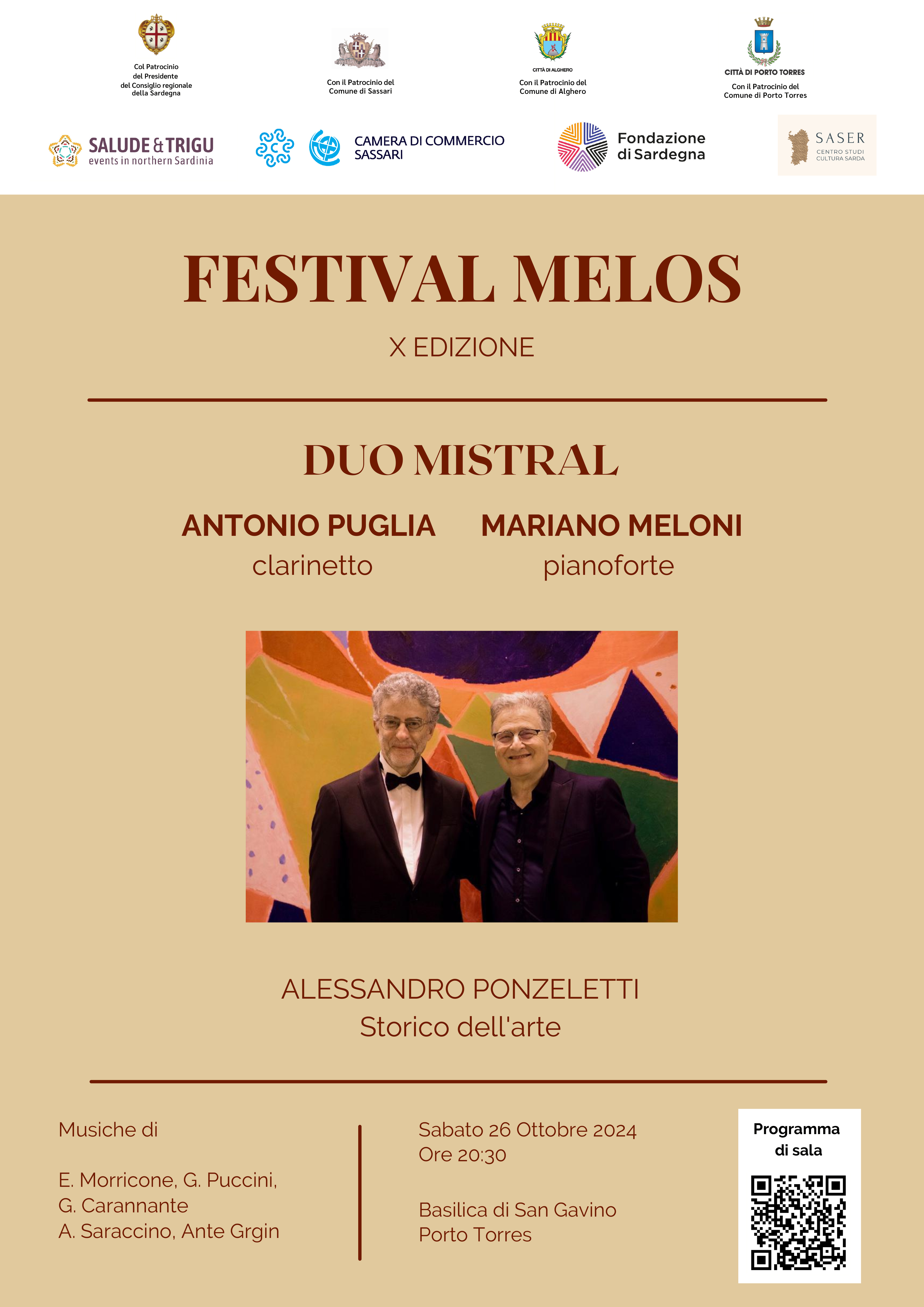 L’appuntamento – realizzato con la Presidenza del Consiglio Regionale della Sardegna, il Comune di Sassari, il Comune di Alghero, il Comune di Porto Torres, la Camera di Commercio di Sassari attraverso il progetto Salude e Trigu, la Fondazione di Sardegna – vede protagonista un duo che ha alle spalle una carriera ultratrentennale e che si esibisce regolarmente con grande successo di pubblico e critica.