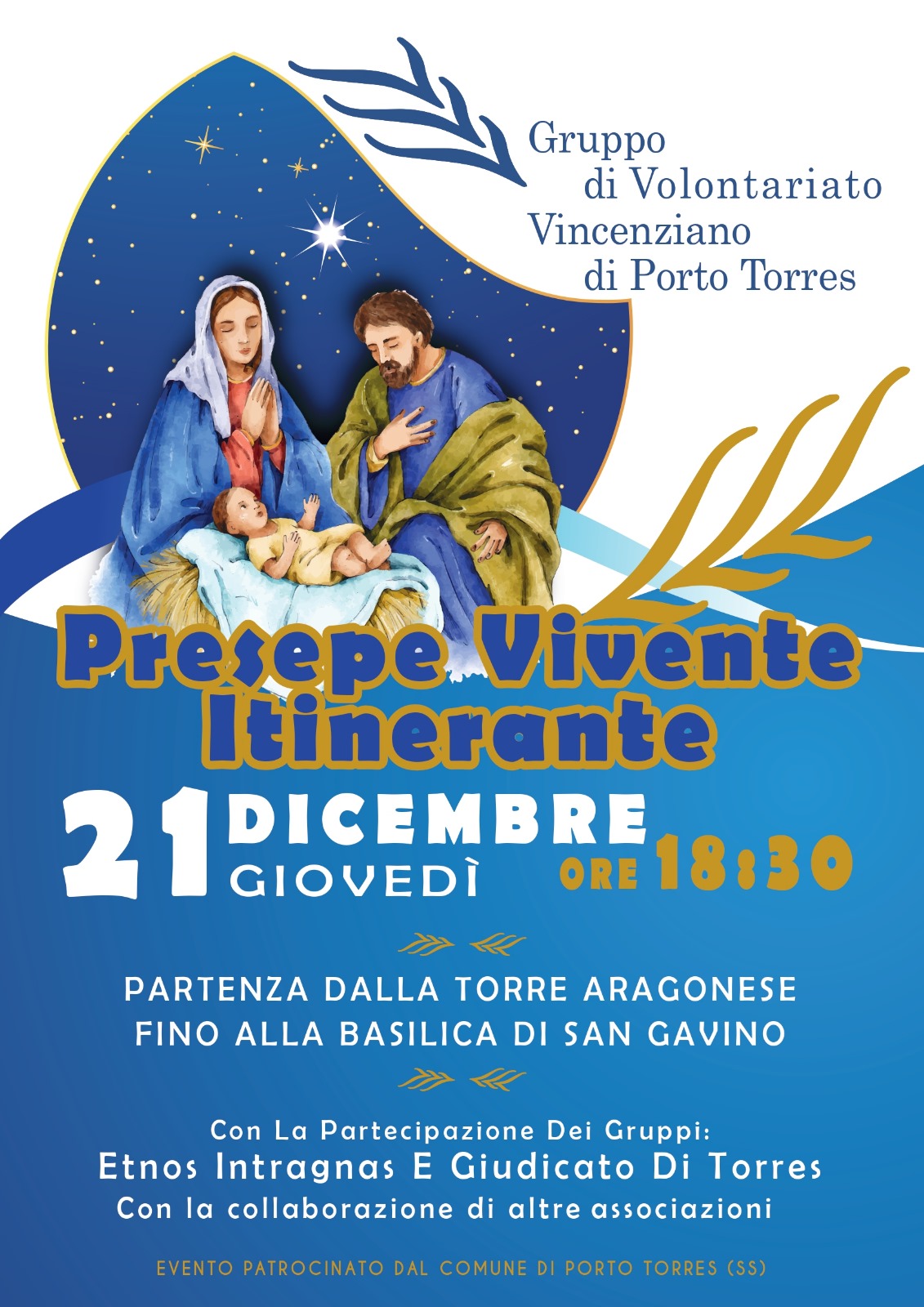 Tradizionale presepe vivente itinerante con partenza dalla Torre aragonese e arrivo alla Basilica di San Gavino. Il percorso sarà animato da canti natalizi accompagnati da tradizionali strumenti musicali.