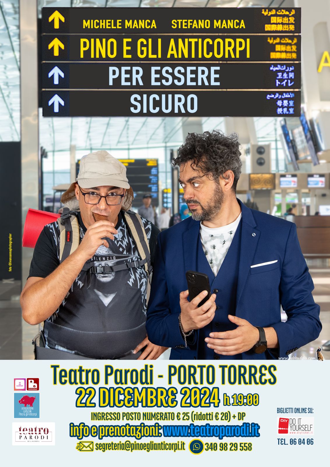 Il duo comico sardo Pino e gli Anticorpi - al secolo Michele e Stefano Manca – accompagnati in scena da un musicista - torna nei teatri con i personaggi più conosciuti, passando da brevi monologhi agli sketch in stile televisivo, omaggiando i modi comici classici dell’avanspettacolo e del “comico spalla”, sino ad arrivare al Clown.