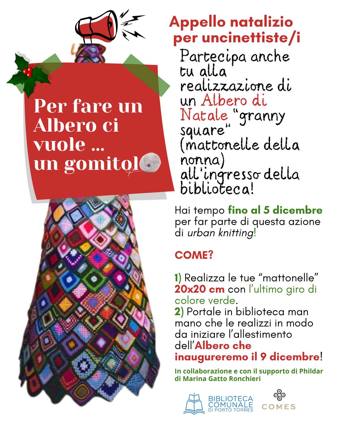 Dal 24 novembre al 5 dicembre la Biblioteca lancia l'appello pubblico rivolto a tutti gli amanti dell'uncinetto per la realizzazione di un albero di Natale a più mani che, a partire del 9 dicembre, sarà collocato nell'androne della Biblioteca.