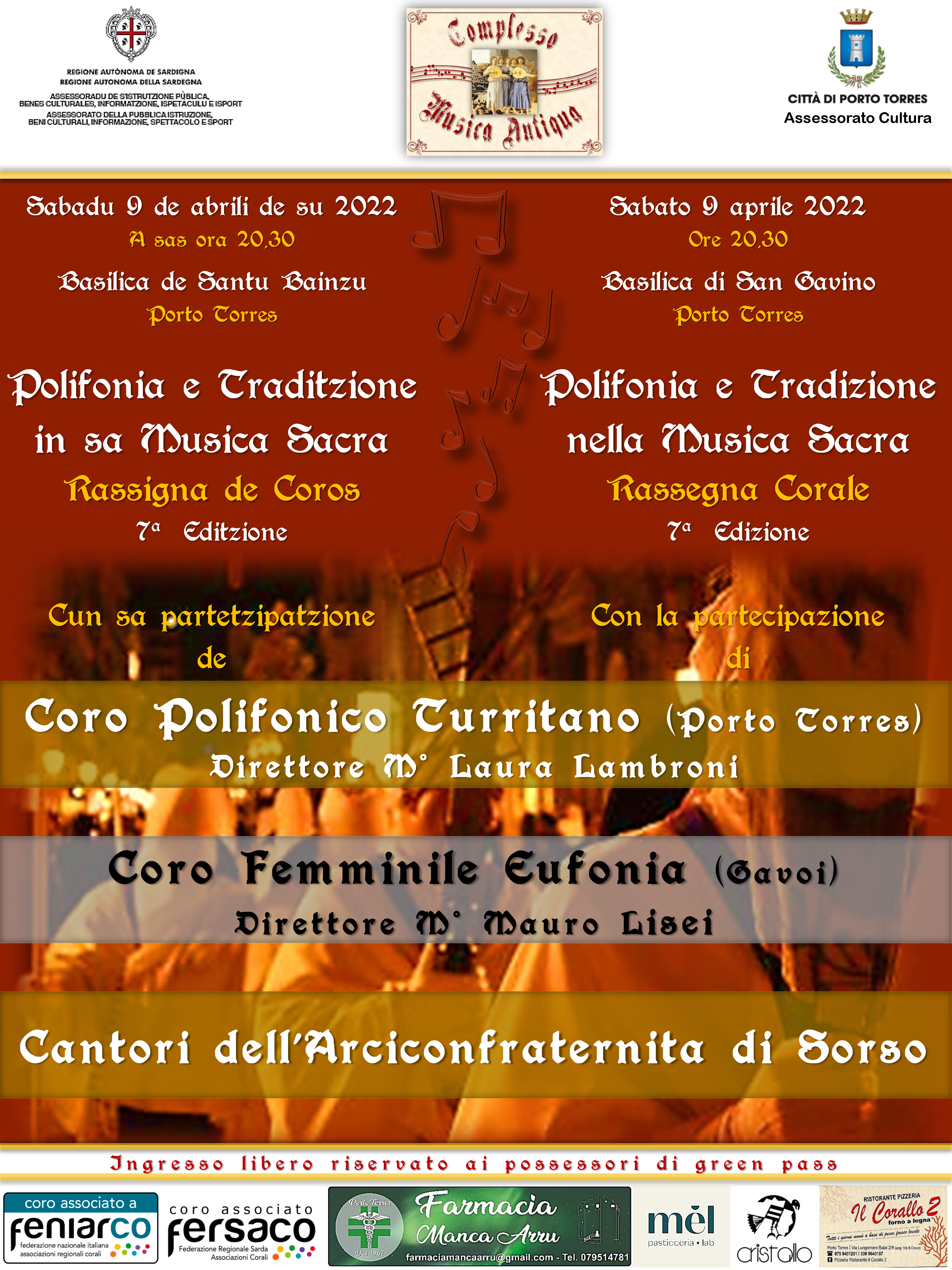 La VII edizione dell’evento vedrà protagonisti il Coro Femminile Eufonia di Gavoi diretto dal M° Mauro Lisei, i Cantori dell'Arciconfraternita di Sorso e il Coro Polifonico Turritano diretto dal M° Laura Lambroni.