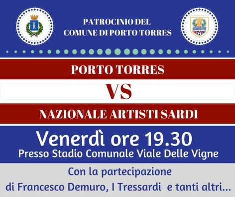 Una serata di calcio e spettacolo, promossa dal tenore Francesco Demuro e dai Tressardi, per aiutare il Porto Torres calcio ad affrontare la stagione calcistica 2017/2018, che vedrà i rossoblu impegnati nel campionato di Promozione.