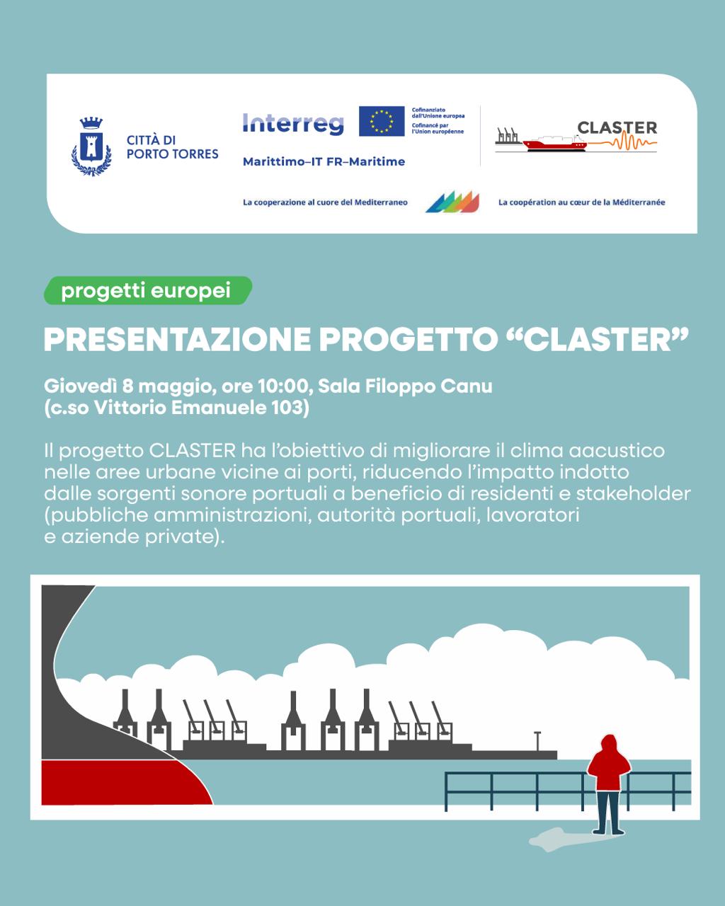 Giovedì 8 maggio, alle ore 10 nella Sala Filippo Canu di Corso Vittorio Emanuele a Porto Torres, si terrà un incontro pubblico dedicato alla presentazione del progetto CLASTER, acronimo di Compatibilità e Sostenibilità Rumore Portuale, finanziato nell’ambito del Programma Interreg Italia-Francia Marittimo 2021–2027.