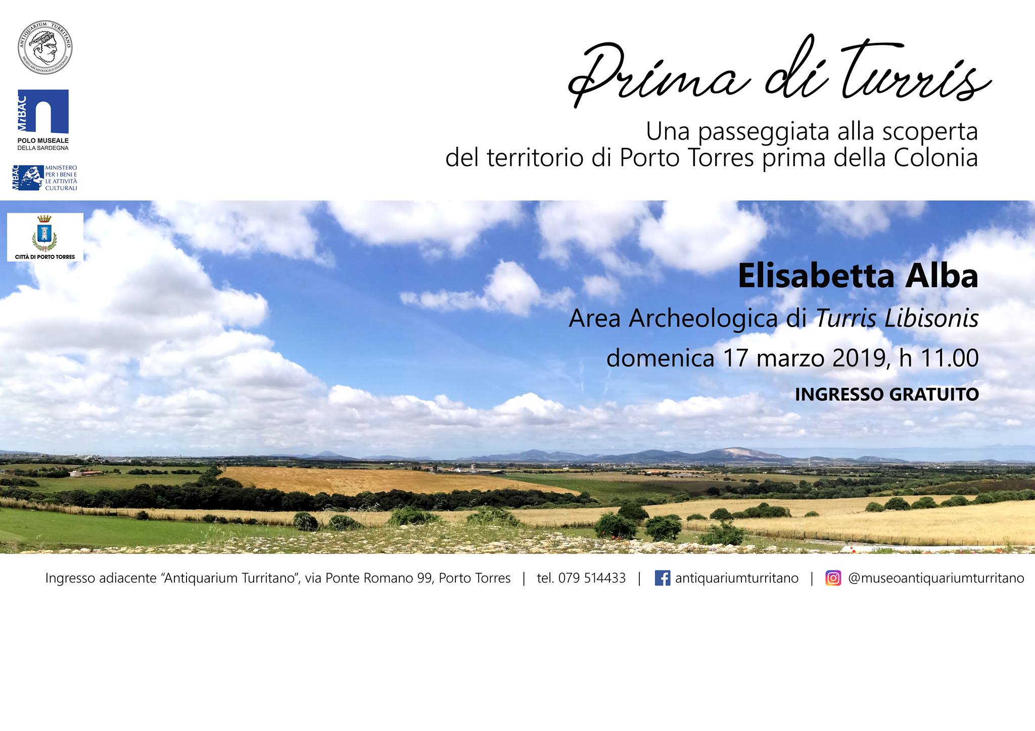 E’ prevista una passeggiata nell’area archeologica di Turris Libisonis, punto di osservazione privilegiato del Golfo dell’Asinara. I visitatori saranno guidati dall’archeologa Elisabetta Alba alla scoperta del territorio della Nurra e del Golfo dell’Asinara prima dell’arrivo dei Romani e della fondazione della Colonia di Turris Libisonis.