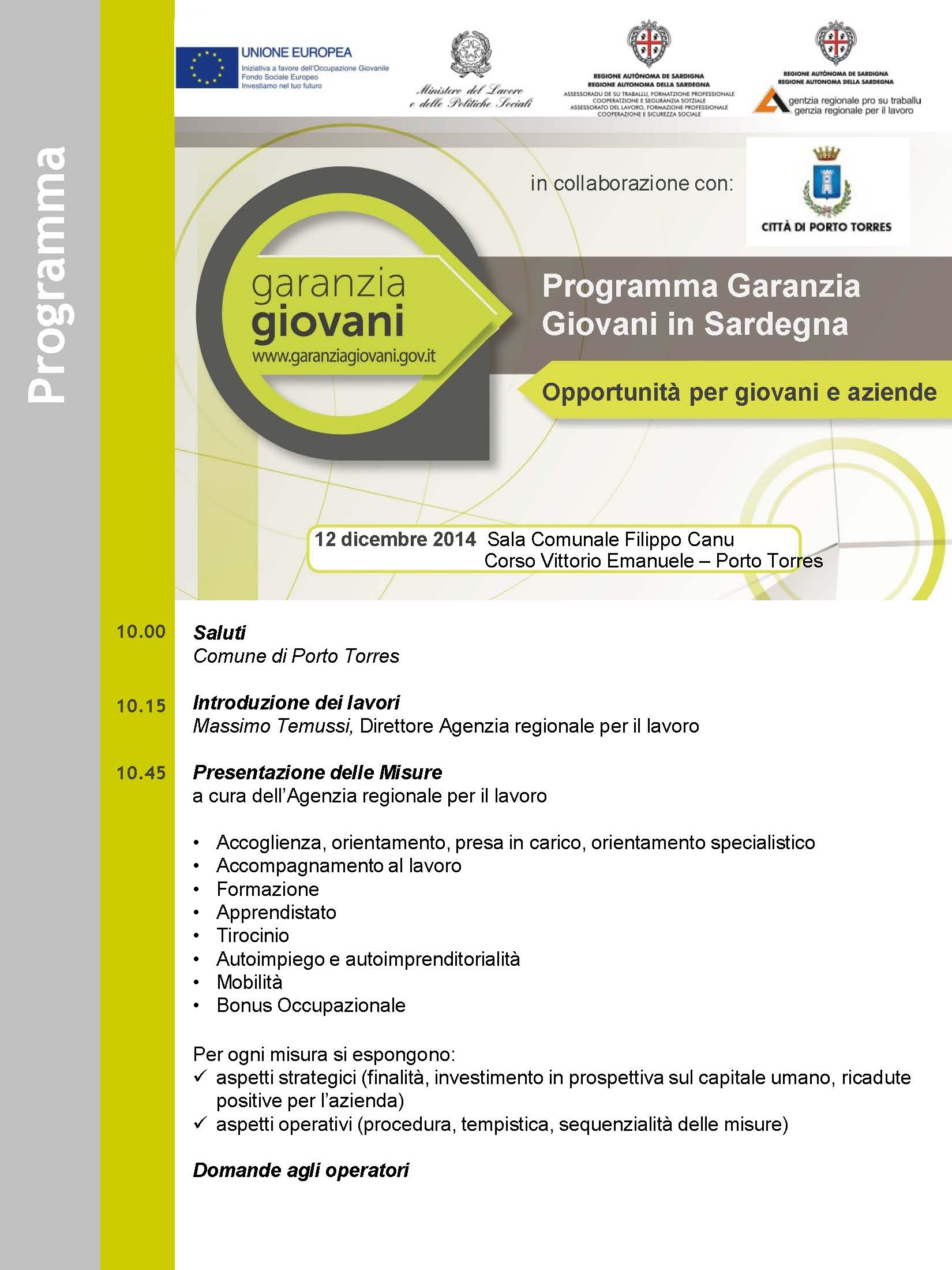 L’Amministrazione Comunale di Porto Torres organizza, in collaborazione con il Cesil, in qualità di Youth Corner Informativo per il Programma Garanzia Giovani, l’info day dedicato al Programma Garanzia Giovani e alle opportunità offerte a giovani e imprese.
