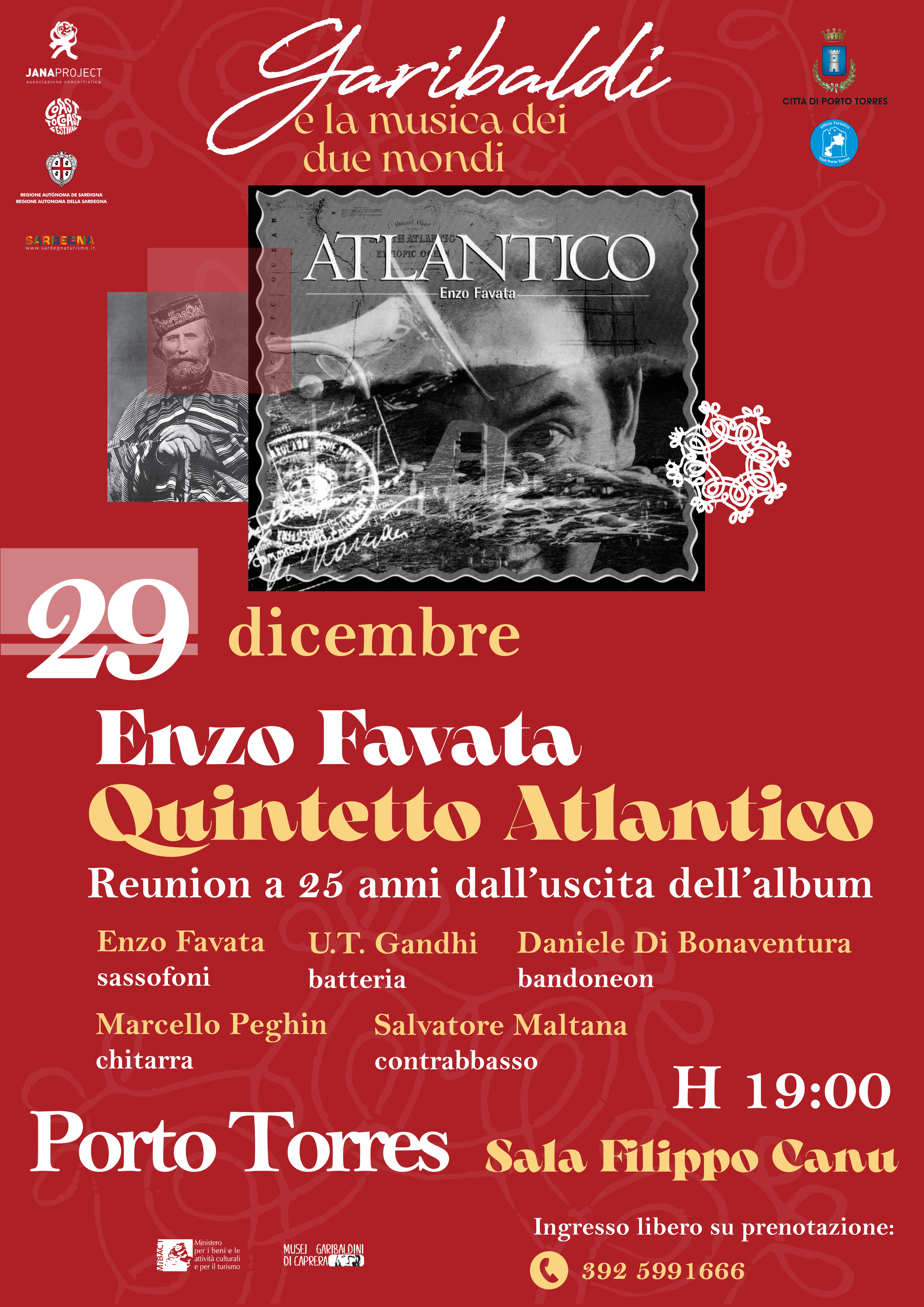 "Garibaldi e la musica dei due mondi" vedrà sul palco Enzo Favata ai sassofoni, U.T. Gandhi alla batteria, Daniele Di Bonaventura al bandoneon, Marcello Peghin alla chitarra e Salvatore Maltana al contrabbasso.