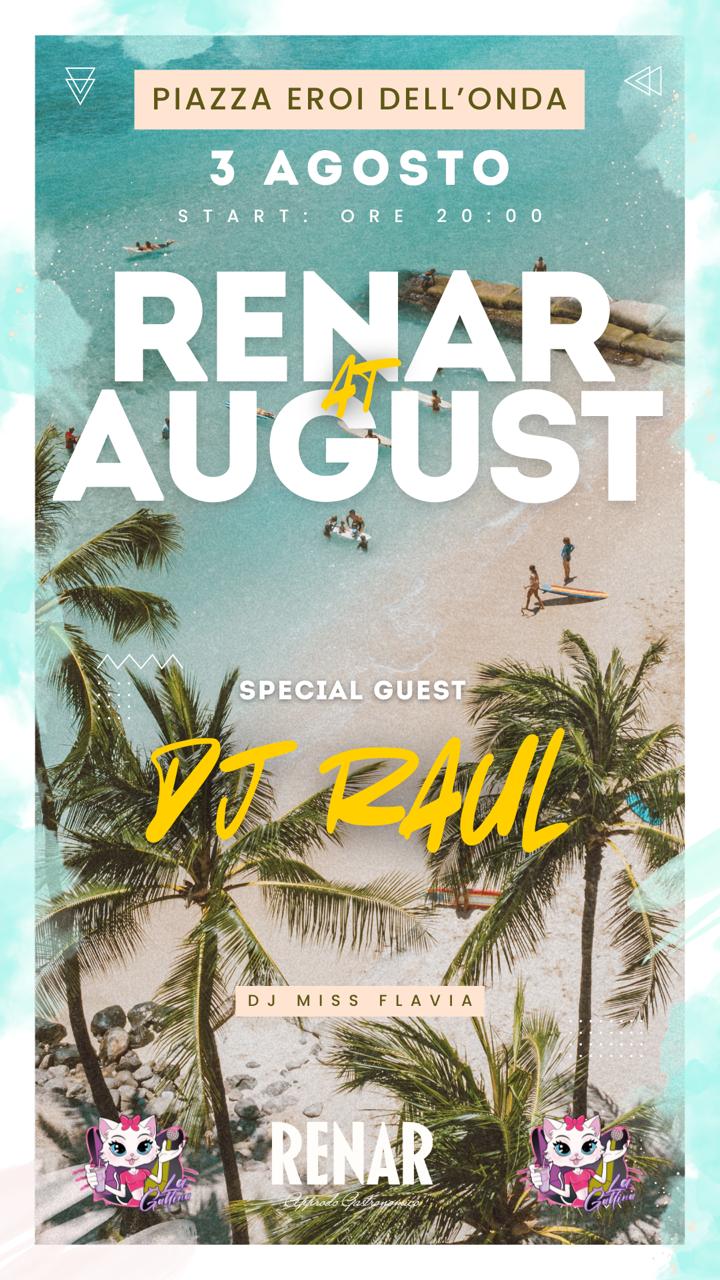 Dalle ore 20:00 sarà operativo un servizio di somministrazione di cibi e bevande con area tavolini, chiosco bar e accoglienza del pubblico. La programmazione musicale avrà inizio alle ore 21:30 con l’alternanza in consolle dei DJ Mattia Fenu e Miss Flavia, a cui seguirà l’esibizione speciale del DJ Raul, volto noto al pubblico televisivo per la partecipazione al programma Mediaset "Temptation Island". Il coordinamento della serata sarà affidato al vocalist Alessandro Solinas.