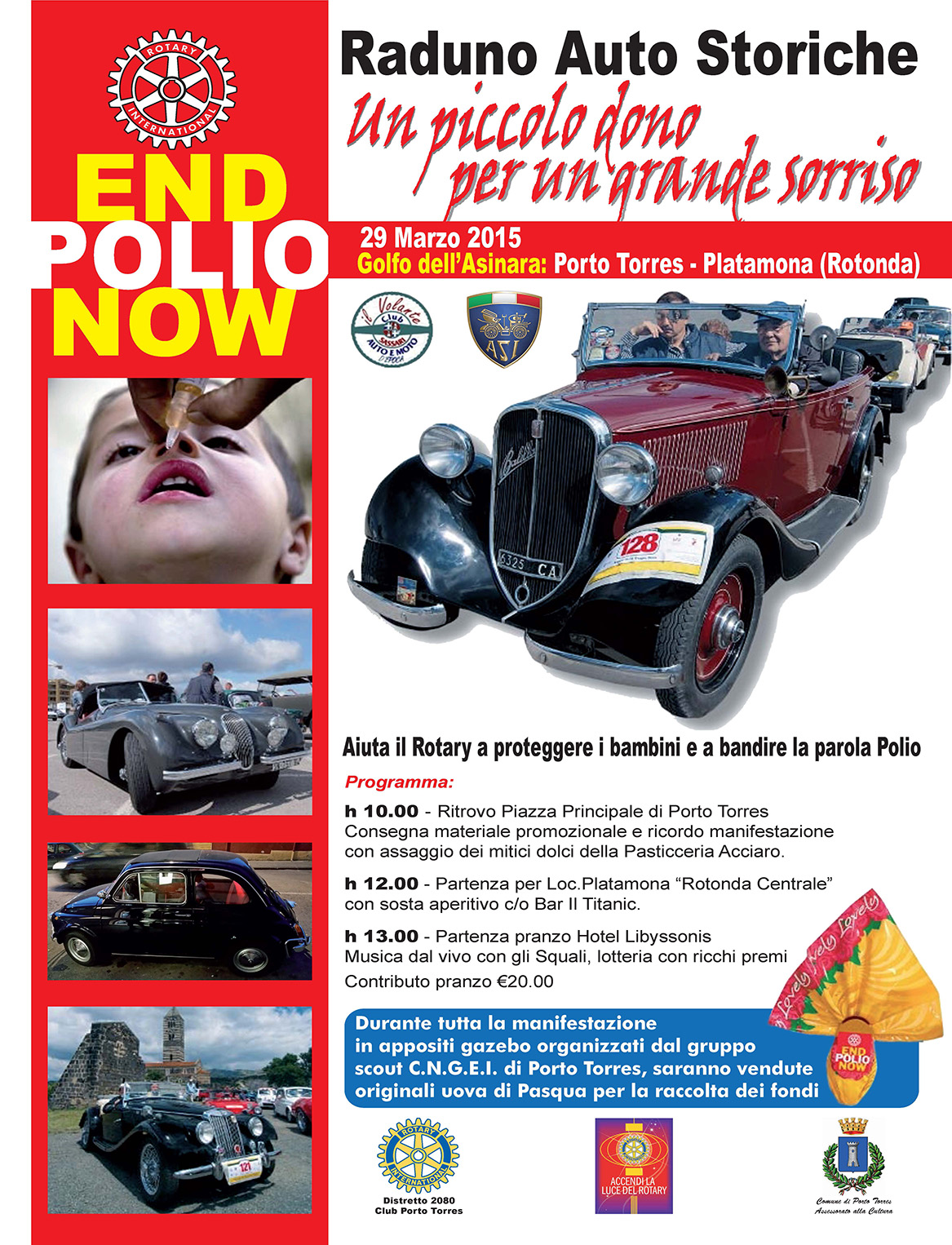 Il Rotary Club Porto Torres organizza, assieme al Club Il Volante, il consueto raduno annuale di auto storiche che seguiranno successivamente il percorso in programma.