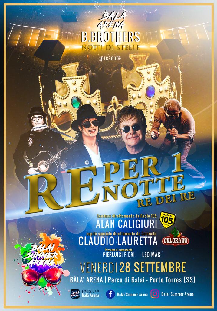 Re x una notte è uno spettacolo nato nel 2007 a Porto Torres da un'idea di Domenico e Alberto Bazzoni. Quest'anno il palco scelto per ospitare l'evento sarà quello del Balai Summer Arena, davanti alla baia di Balai.