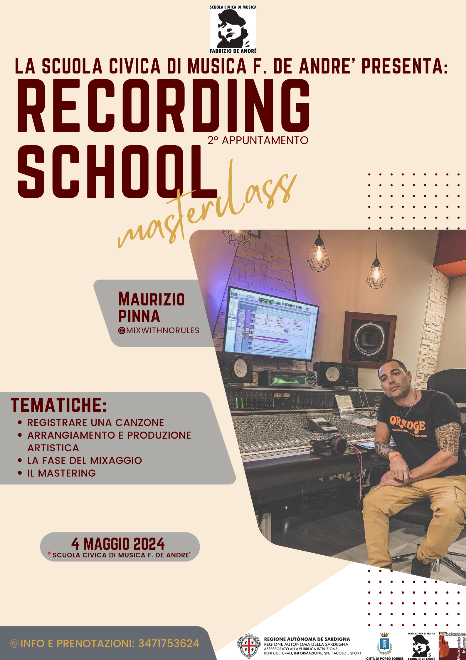La giornata sarà presieduta da Maurizio Pinna, tecnico del suono e produttore italiano, owner della Sound Room Studio da oltre 20 anni. La sua carriera professionale si forma presso il Musician Institute di Los Angeles e continua poi in Italia presso lo studio di registrazione Cat Sound di Mario Marcassa, rinomato studio di successo per la sua evoluzione nel mondo del Jazz.