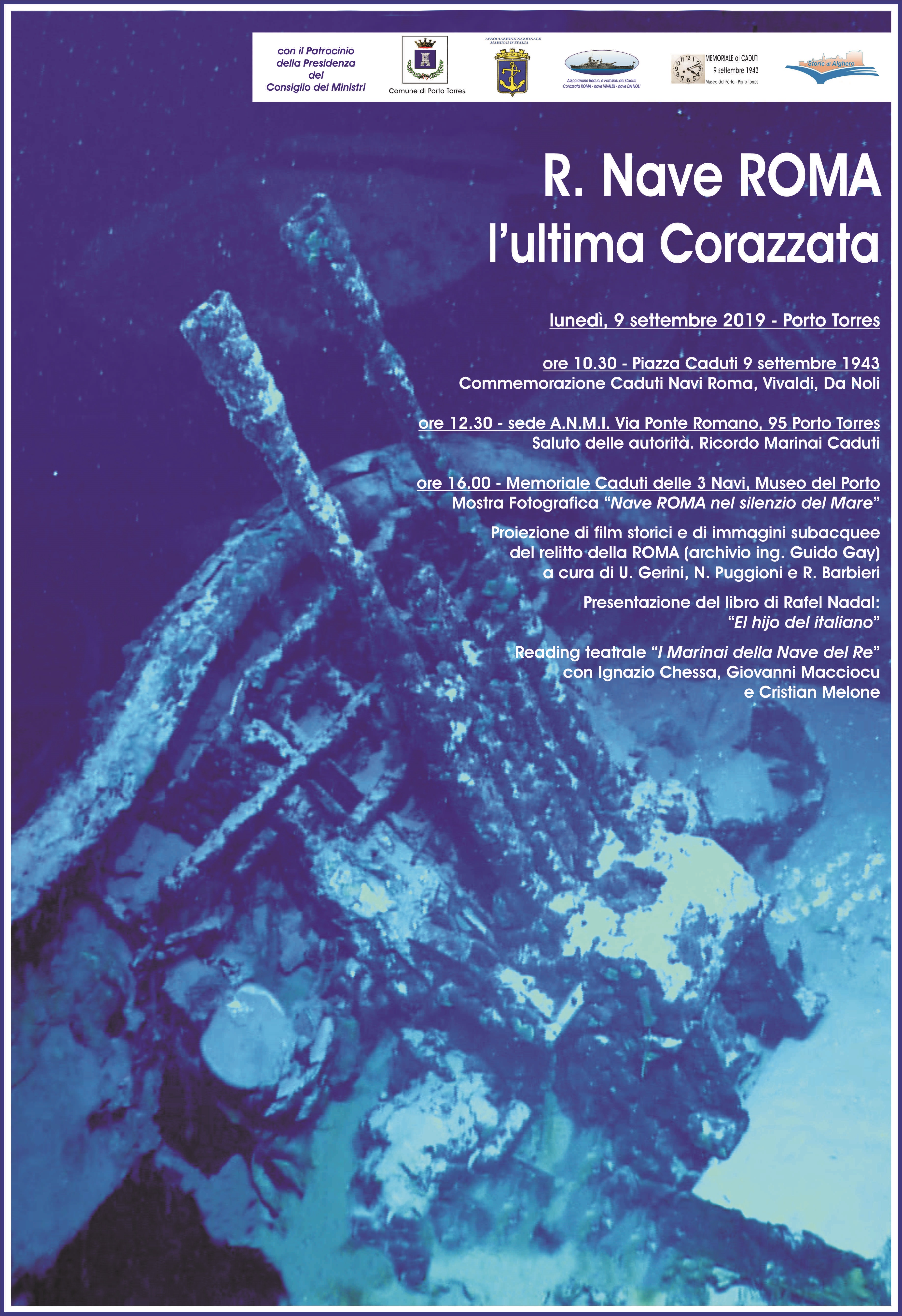 - Proiezione di film storici e di immagini subacquee del relitto della ROMA (archivio ing. Guido Gay) a cura di U. Gerini, N. Puggioni e R. Barbieri.