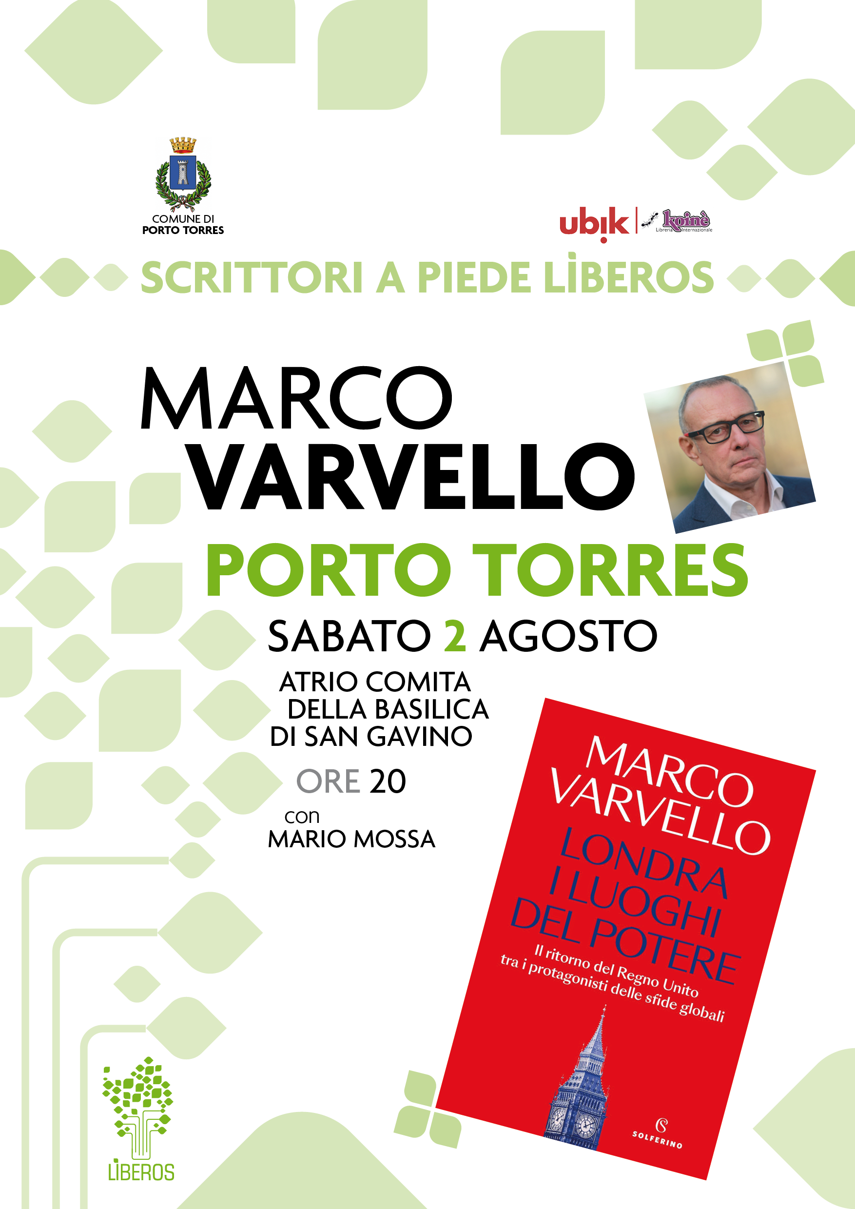 L’autore e giornalista Marco Varvello presenta Londra. I luoghi del potere (Solferino) alle 20 a Porto Torres, presso l’Atrio Comita, nell’ambito della rassegna letteraria Scrittori a piede lìberos.
