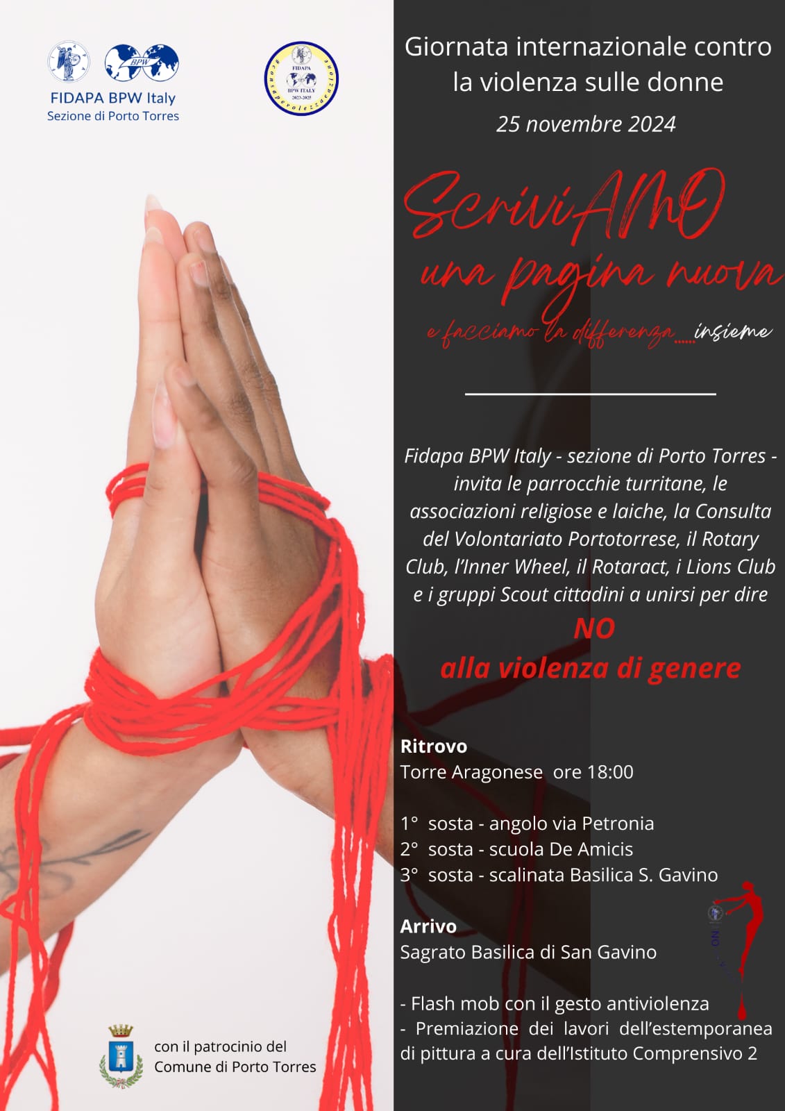 Fiaccolata per dire NO alla violenza sulle donne. Coinvolge le parrocchie turritane, le associazioni religiose e laiche, la Consulta del Volontariato, Rotary Club, Inner Wheel, Rotaract, Lions Club, i gruppi Scout cittadini e la cittadinanza.