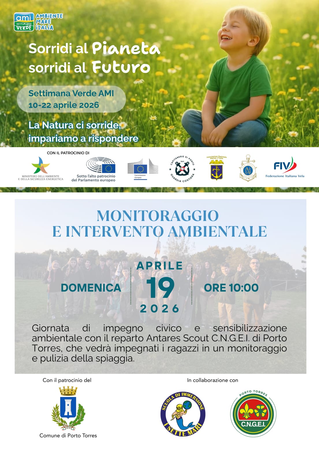 Giornata di impegno civico e sensibilizzazione ambientale all’interno della settimana verde A.M.I., con il reparto Antares Scout C.N.G.E.I. I ragazzi scout volontari si impegneranno per raccolta dati e successiva pulizia della spiaggia dello Scogliolungo, guidati e accompagnati dalla dott.ssa Cristina Bonino, Biologa marina Sette Mari e referente A.M.I. Porto Torres. La raccolta dati sulla quantità e qualità dei rifiuti spiaggiati sarà aggiunta alle banche dati di A.M.I. Il monitoraggio invece farà comprendere ai ragazzi il metodo scientifico e le strumentazioni utilizzate per tali studi ad hoc, permettendo di capire che ogni gesto è importante e tutti possono partecipare attivamente per l’Ambiente.