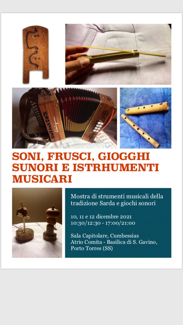 Fabrizio Masia presenta presso la sala capitolare nell'Atrio Comita della Basilica di San Gavino una mostra di strumenti musicali e giochi sonori della tradizione sarda